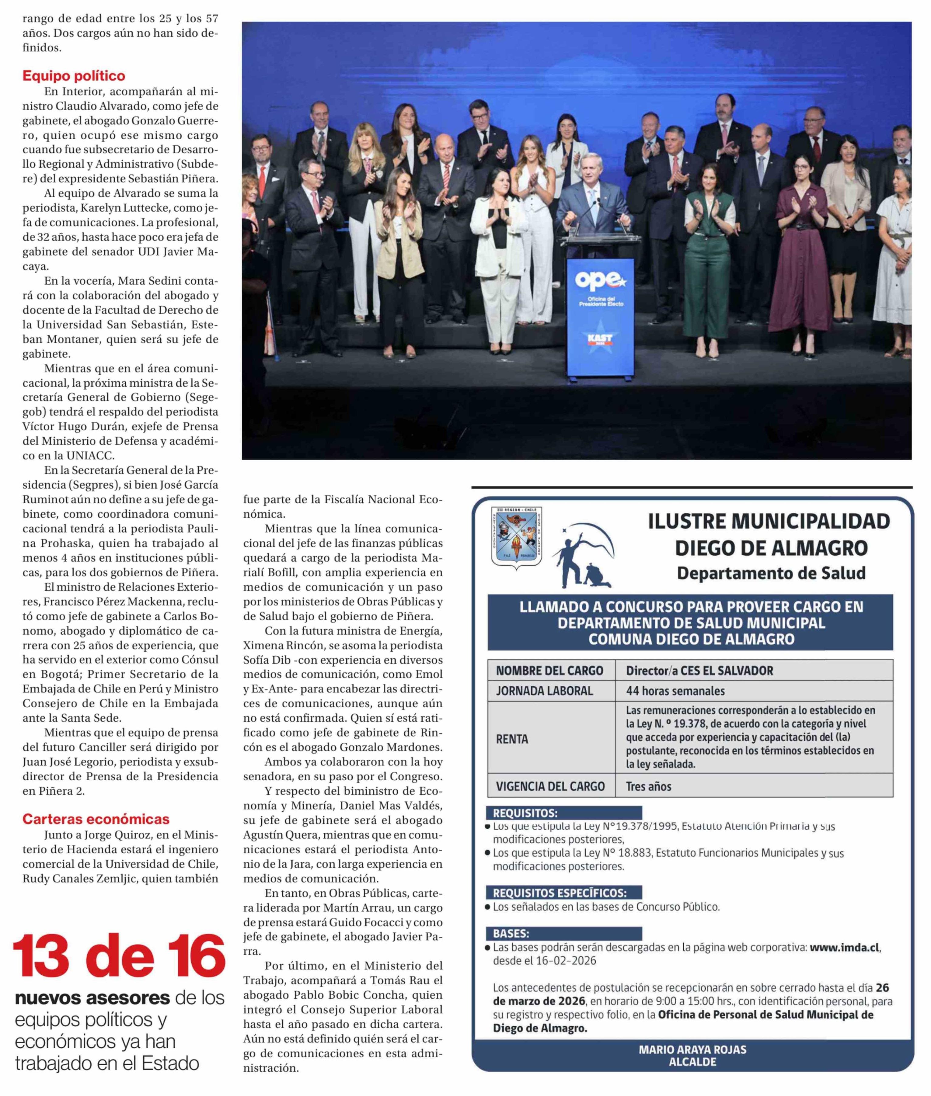Quiénes serán los asesores clave del comité político y económico de Kast 16-02-2026 La Segunda |