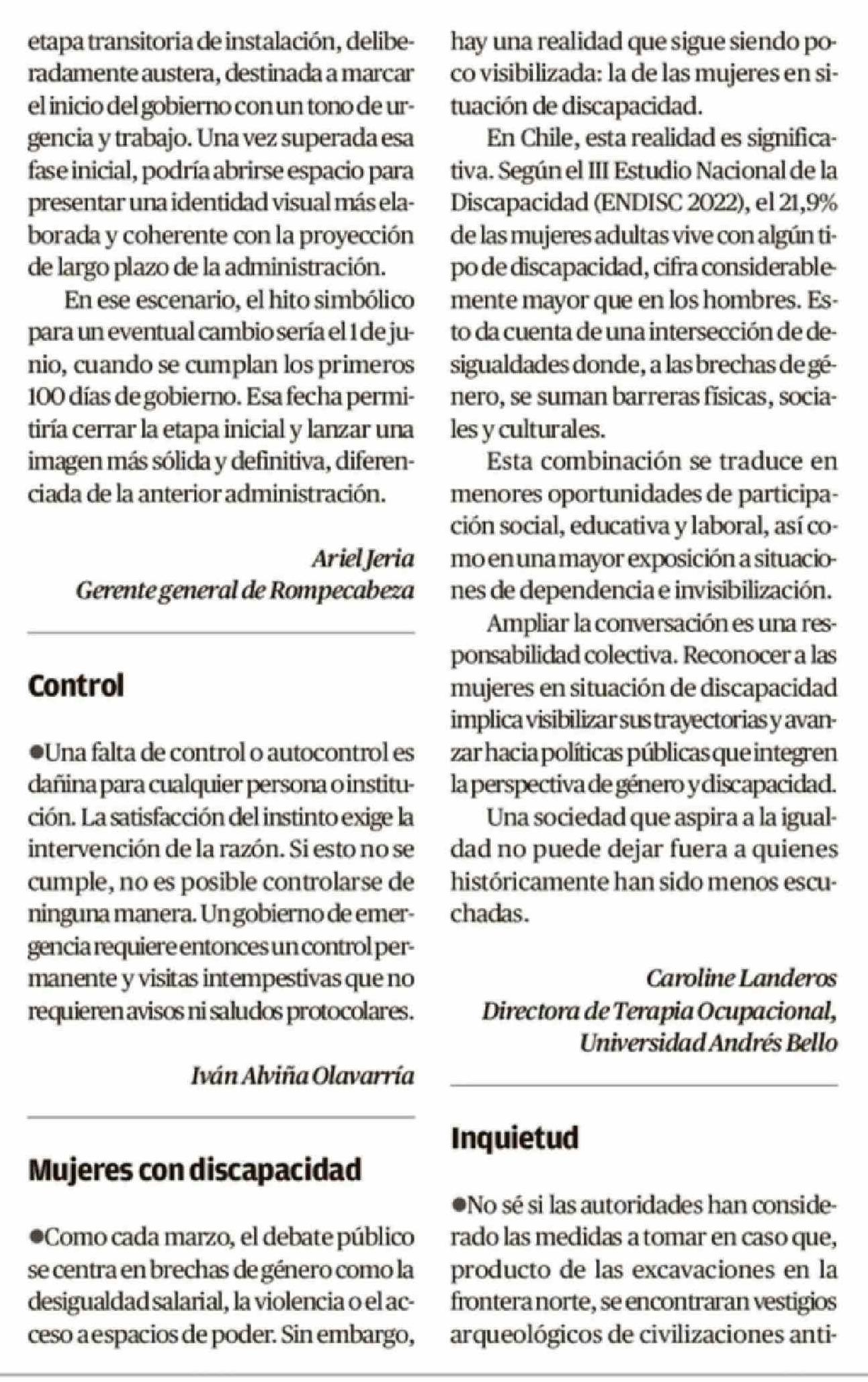 Cartas: Mujeres con discapacidad 18-03-2026 El Mercurio de Valparaíso |