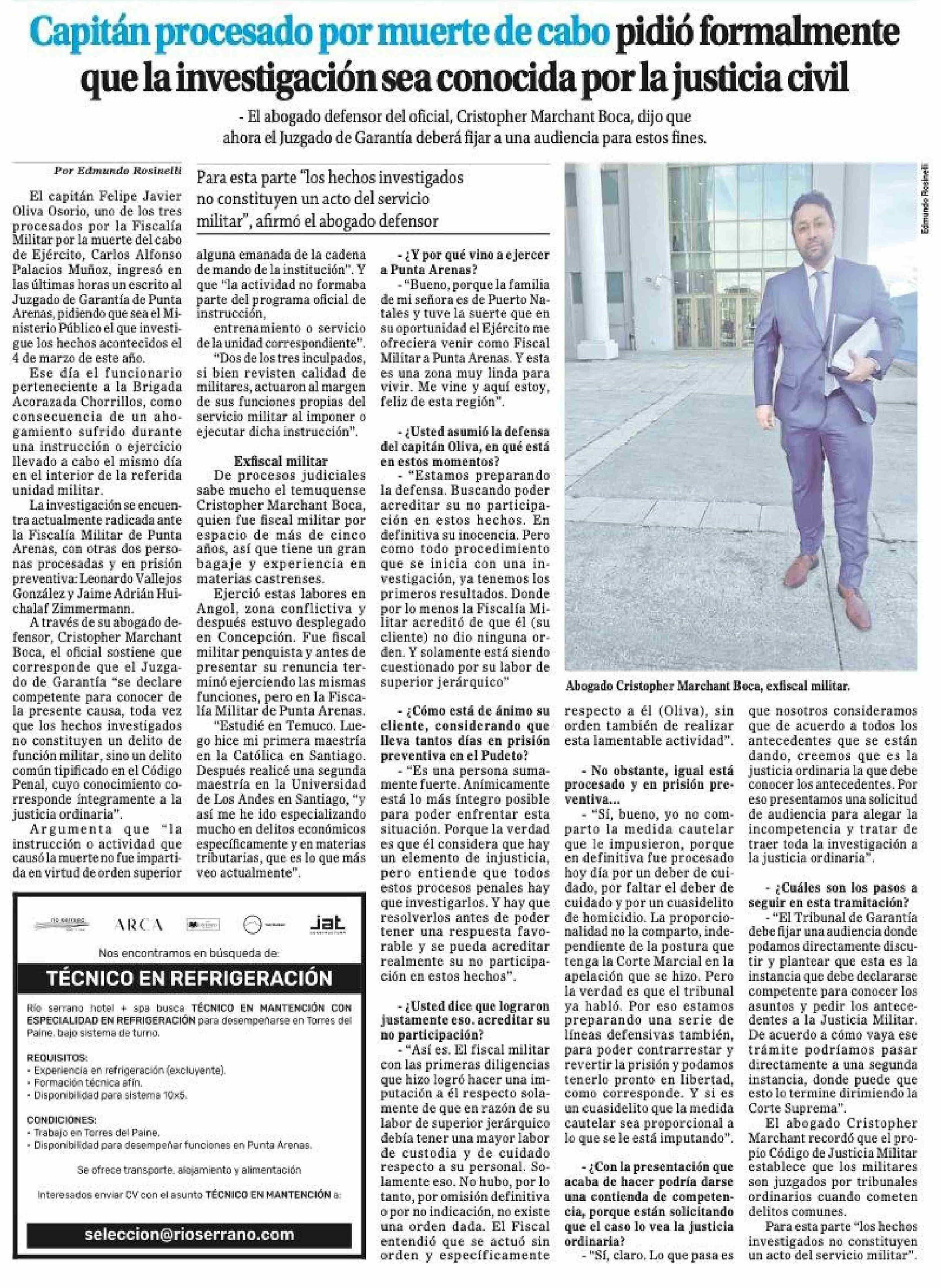 Capitán procesado por muerte de cabo pidió formalmente que la investigación sea conocida por la justicia civil 29-03-2026 El Magallanes |
