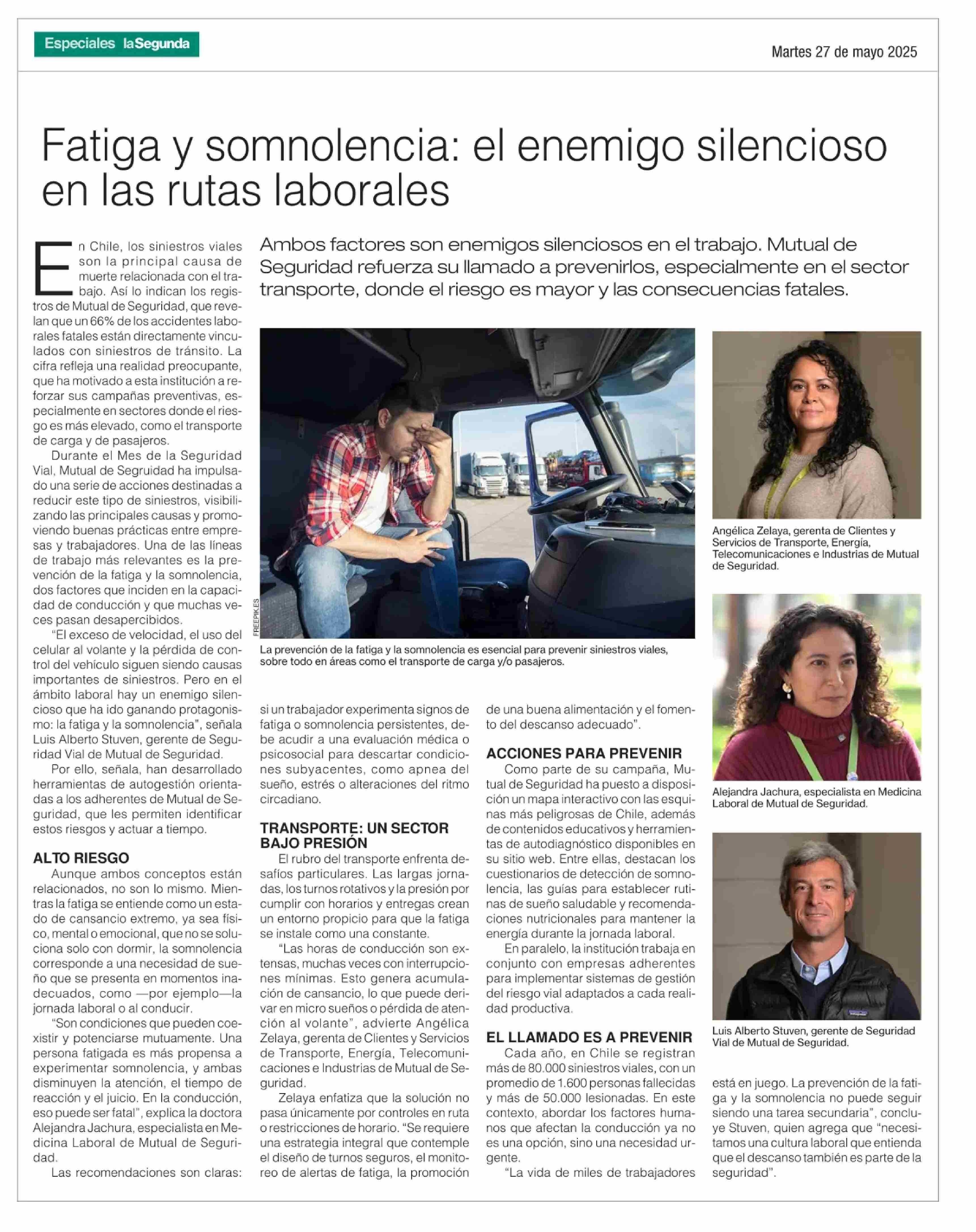 Fatiga y somnolencia: el enemigo silencioso en las rutas laborales 27-05-2025 La Segunda |