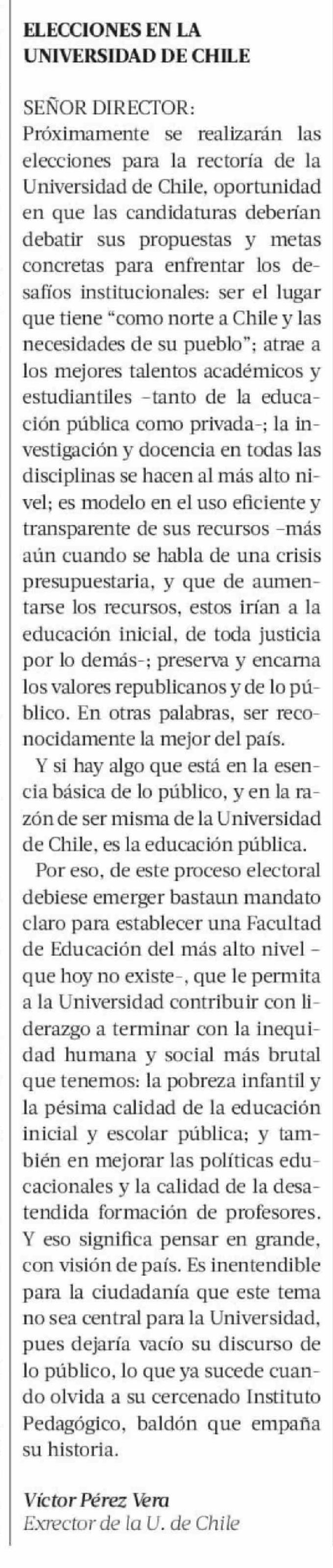 Cartas: ELECCIONES EN LA UNIVERSIDAD DE CHILE