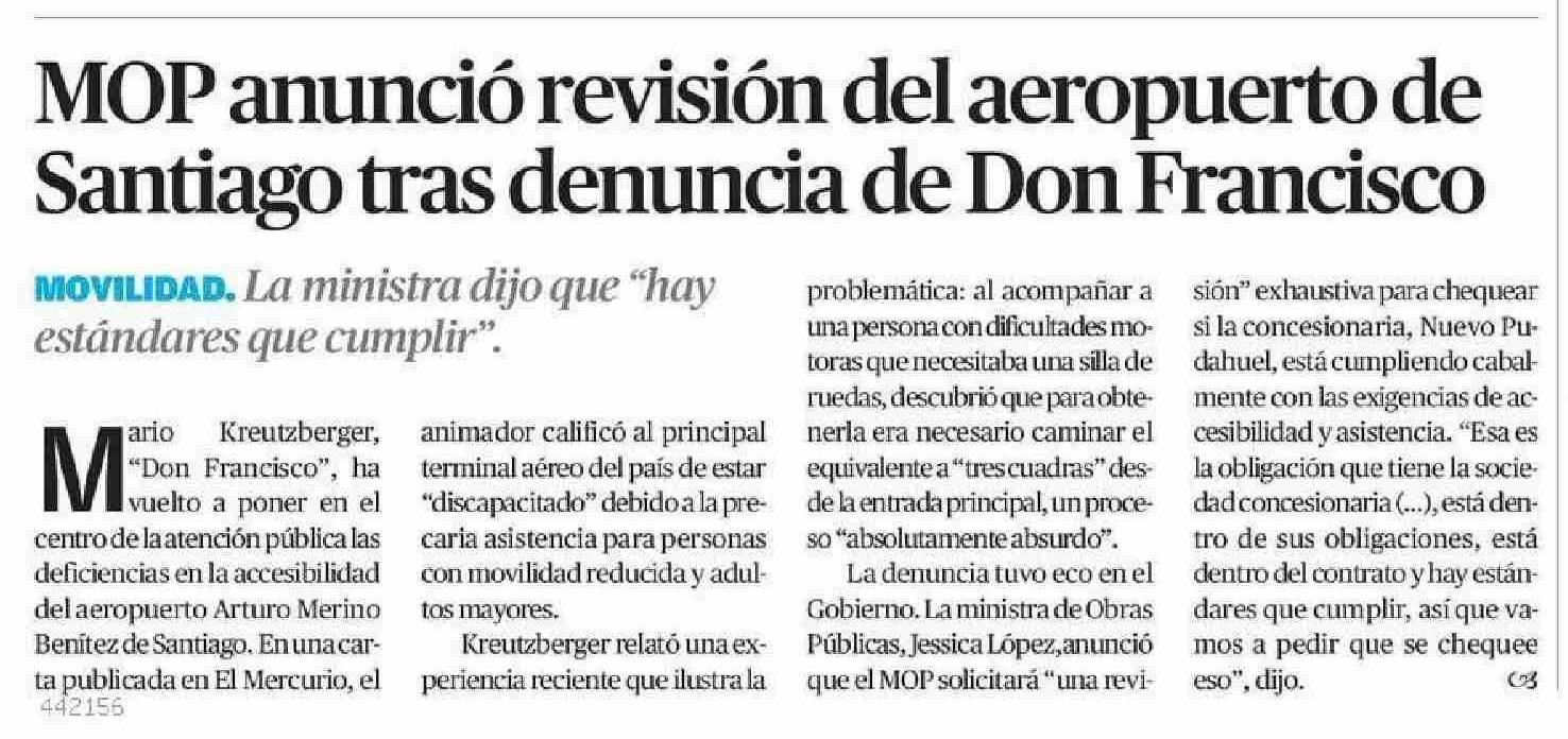 | Título: | MOP anunció revisión del aeropuerto de Santiago tras denuncia de Don Francisco |