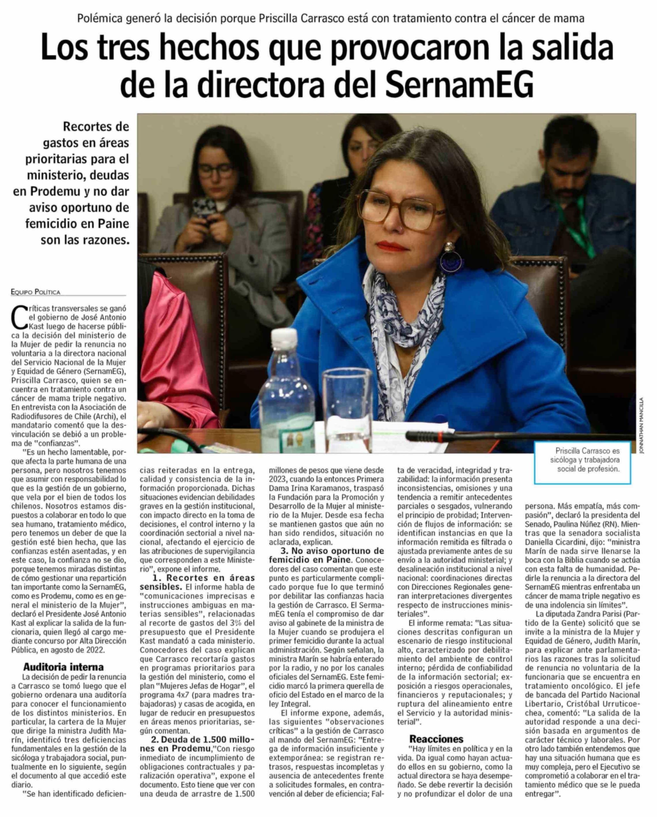 Los tres hechos que provocaron la salida de la directora del SernamEG 01-04-2026 Las Últimas Noticias |