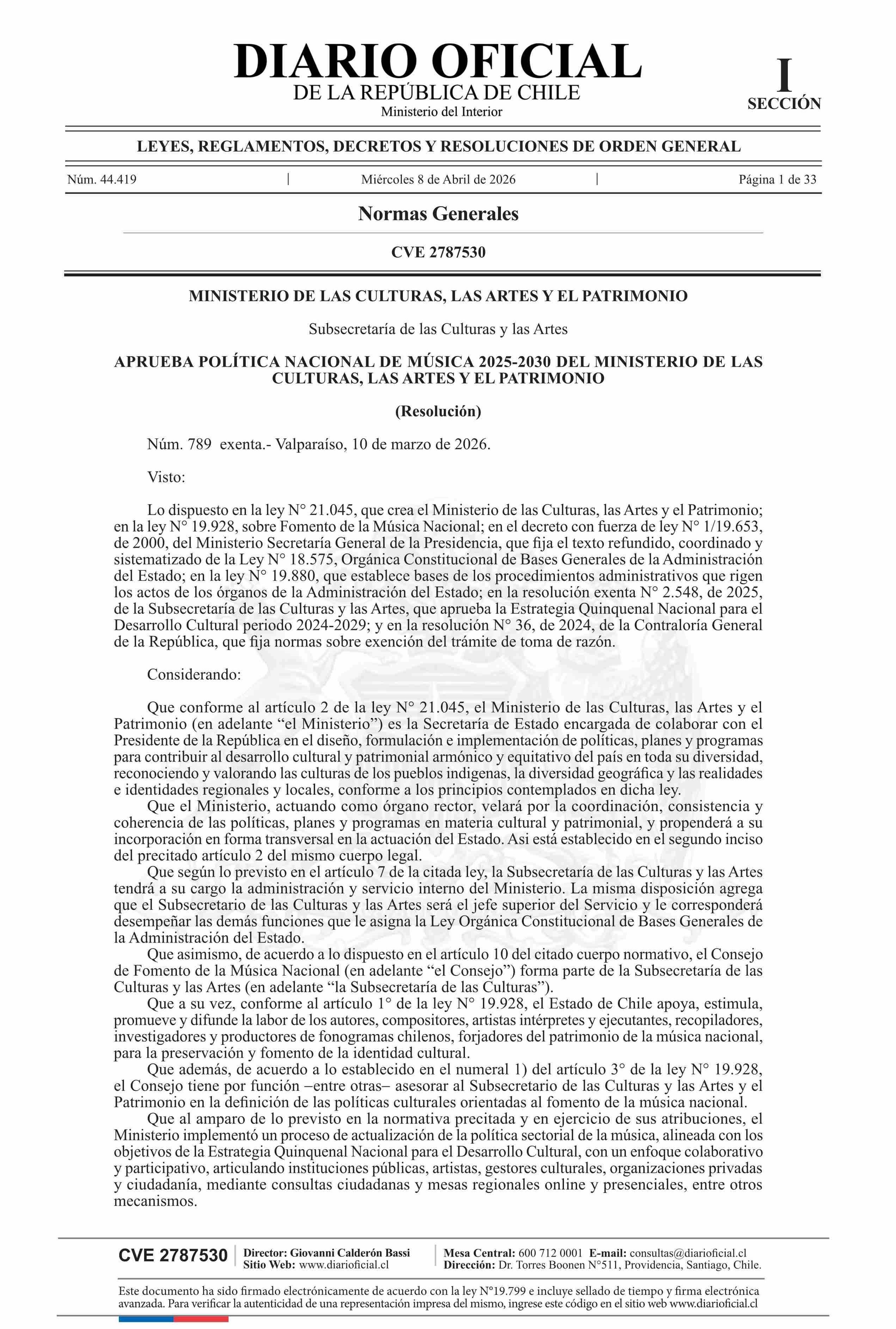 Título: MINISTERIO DE LAS CULTURAS, LAS ARTES Y EL PATRIMONIO