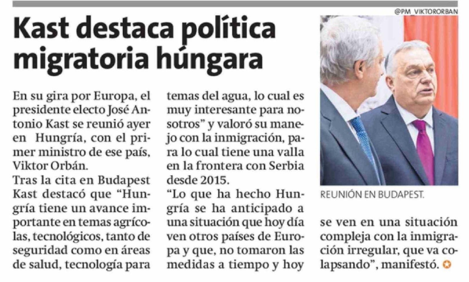 Kast destaca política migratoria húngara 05-02-2026 La Estrella de Concepción |