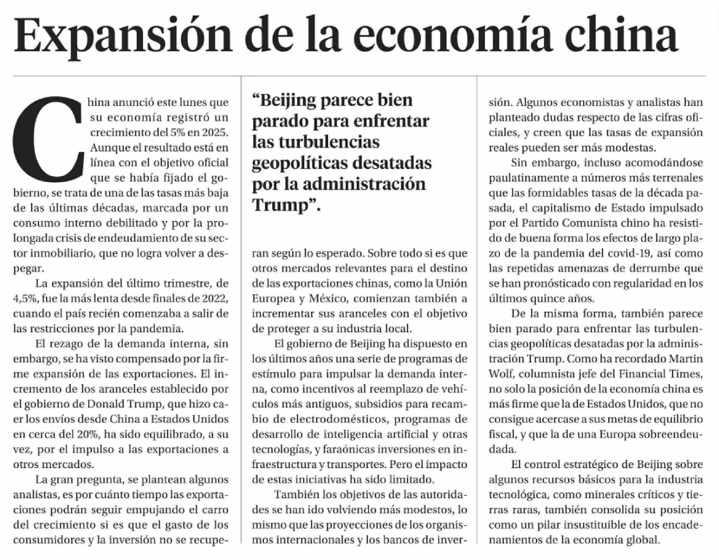 Título: Editorial: Expansión de la economía china