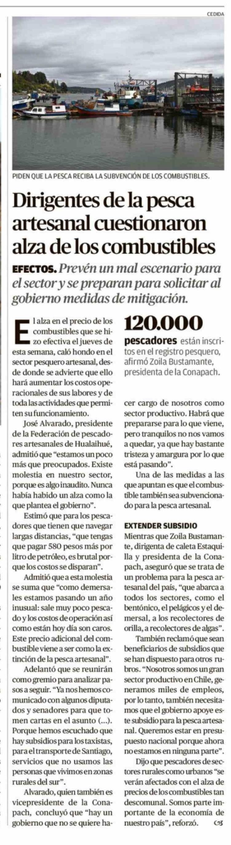 Título: Dirigentes de la pesca artesanal cuestionaron alza de los combustibles