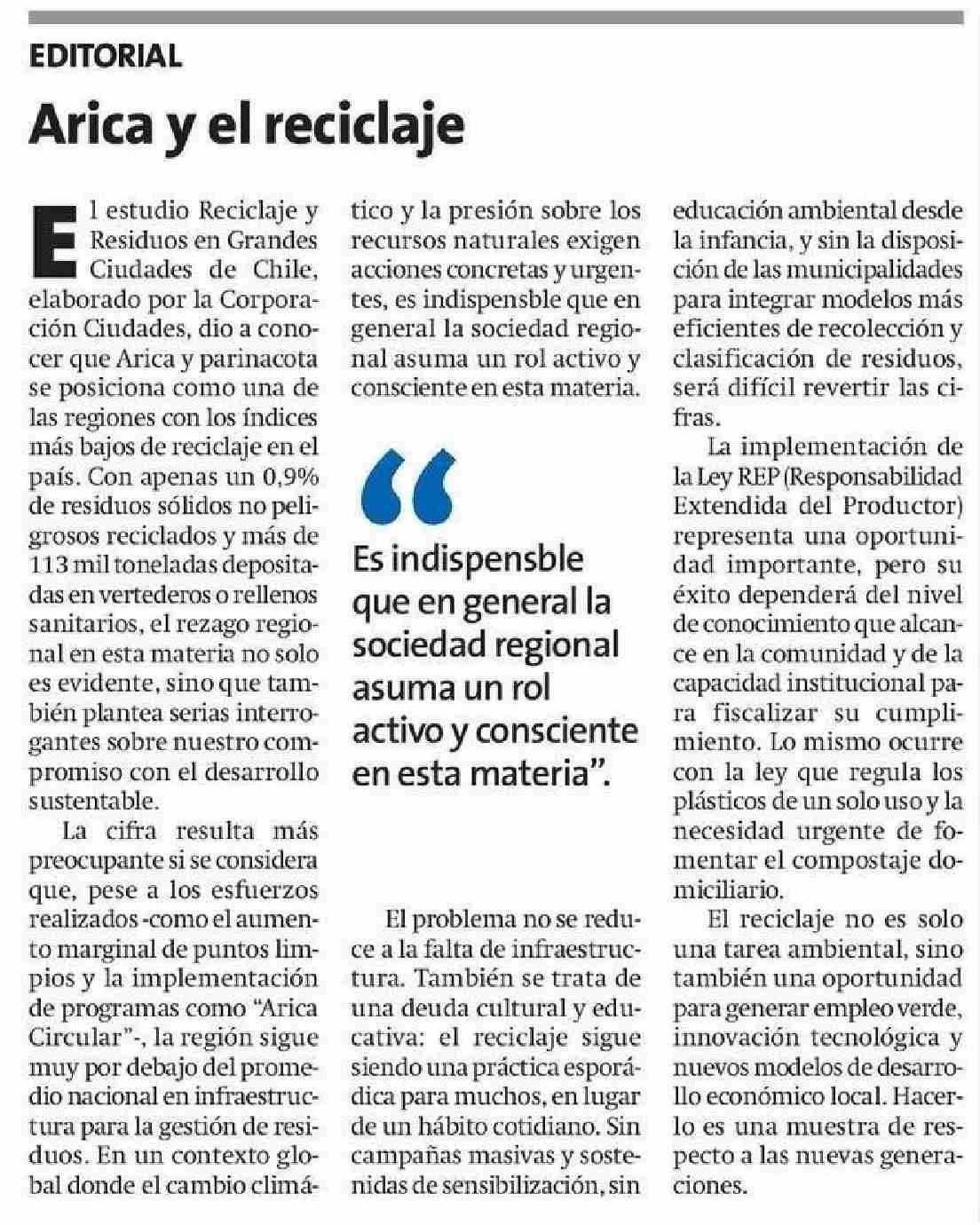 Editorial: Arica y el reciclaje 29-05-2025 La Estrella de Arica |