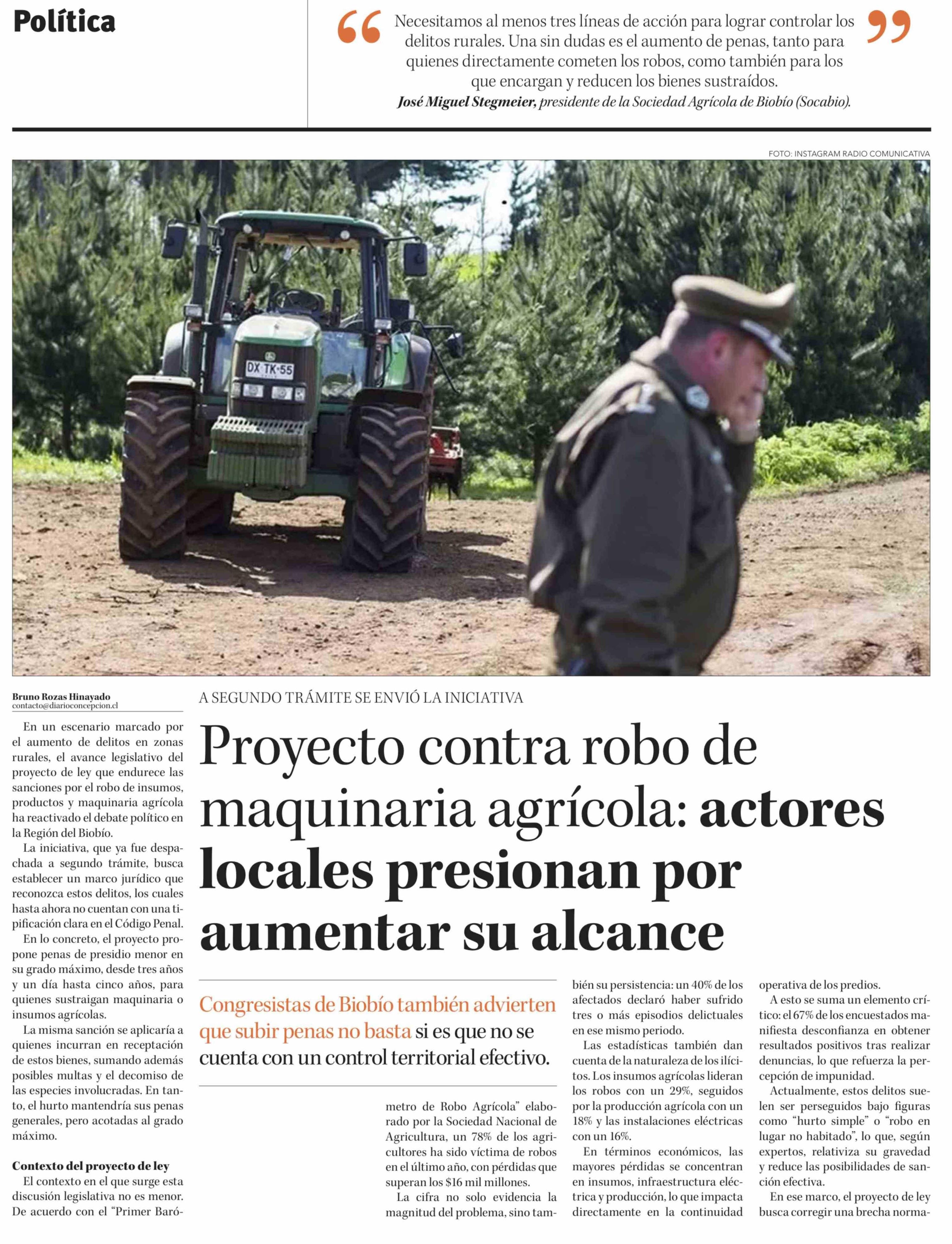 Título: Proyecto contra robo de maquinaria agrícola: actores locales presionan por aumentar su alcance