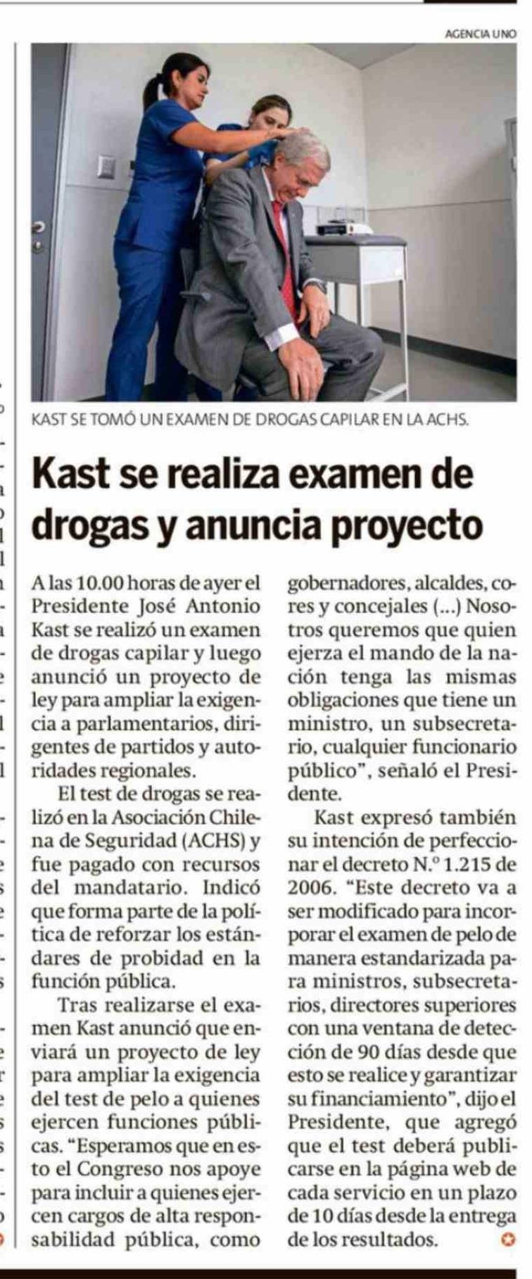 Título: Kast se realiza examen de drogas y anuncia proyecto