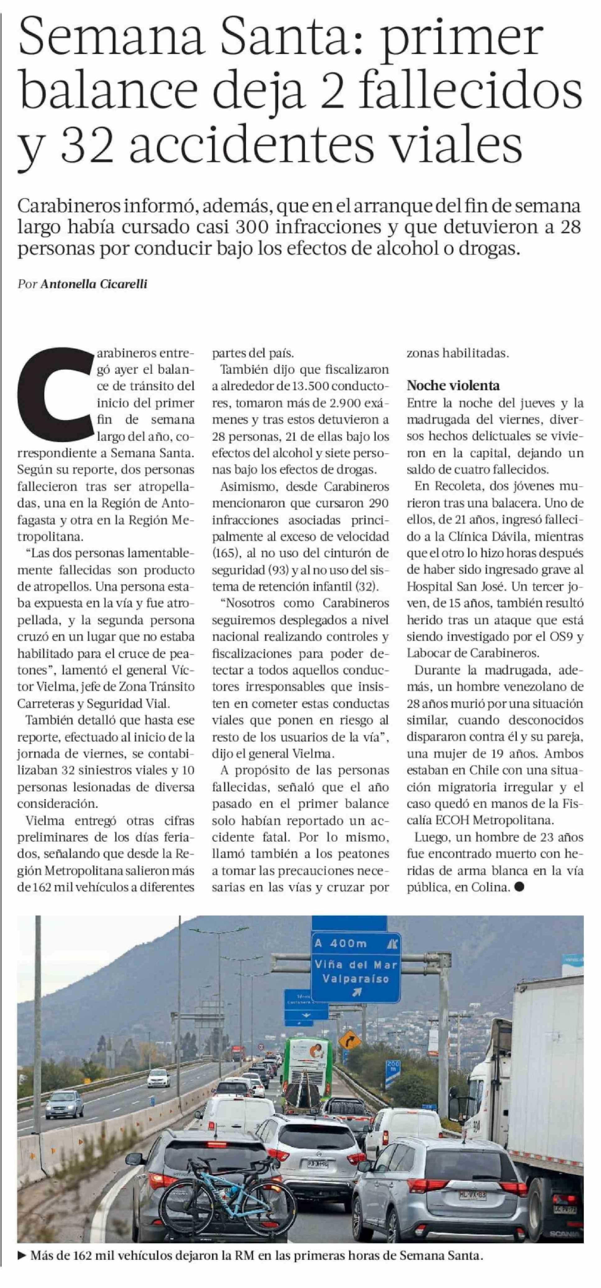 Semana Santa: primer balance deja 2 fallecidos y 32 accidentes viales 04-04-2026 La Tercera |
