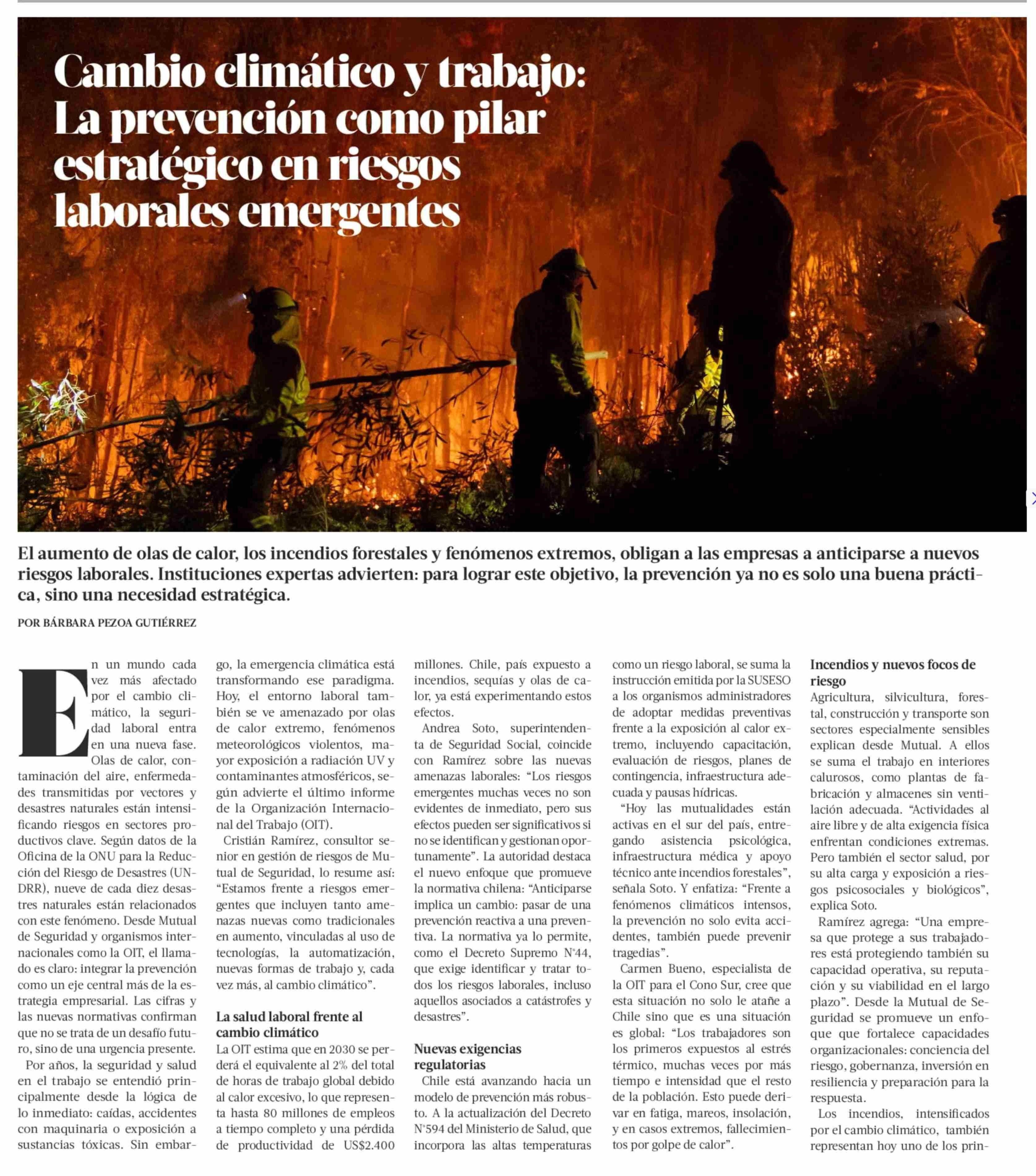 Cambio climático y trabajo: La prevención como pilar estratégico en riesgos laborales emergentes 24-01-2026 La Tercera |