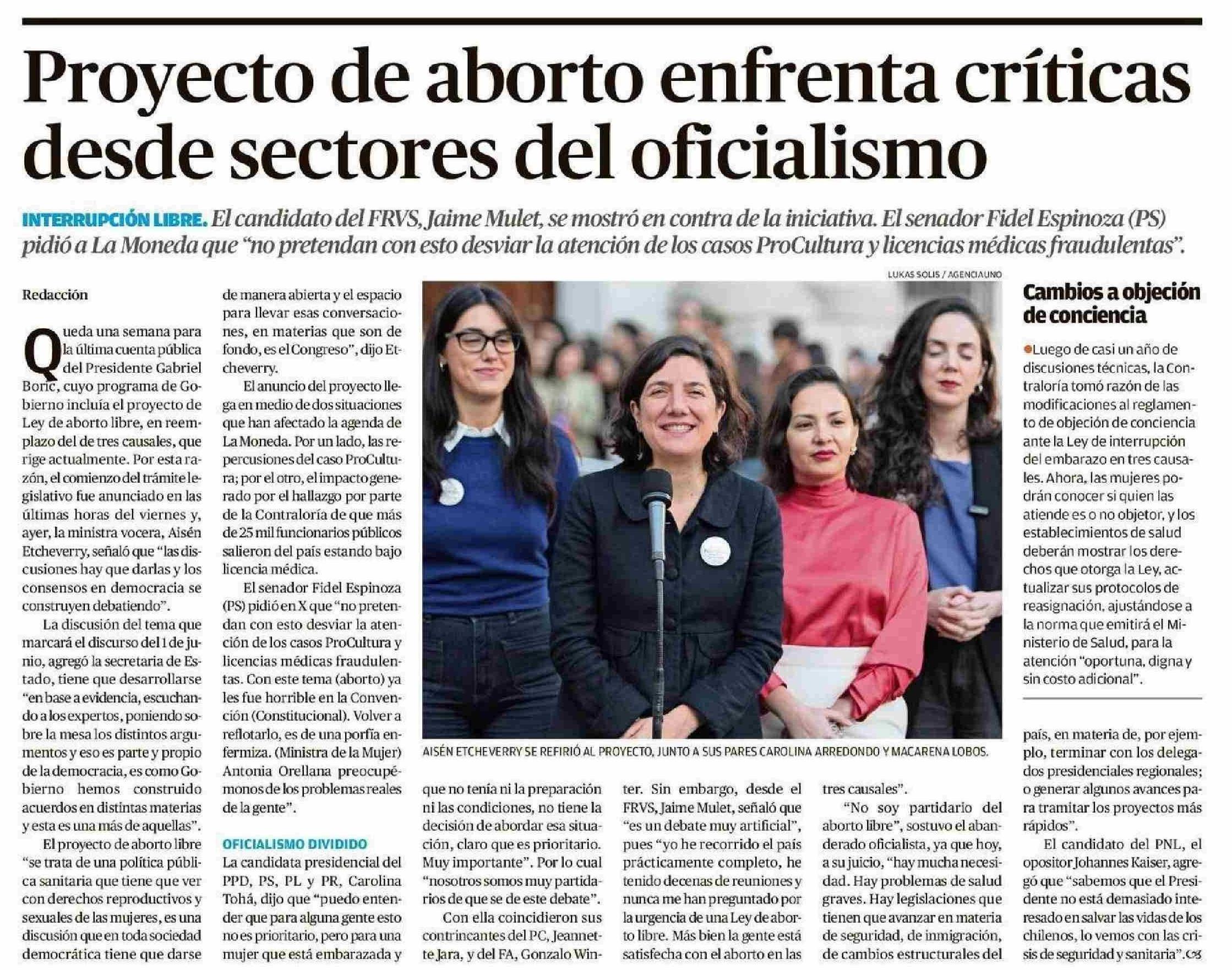 Proyecto de aborto enfrenta críticas desde sectores del oficialismo 25-05-2025 El Austral de Osorno |