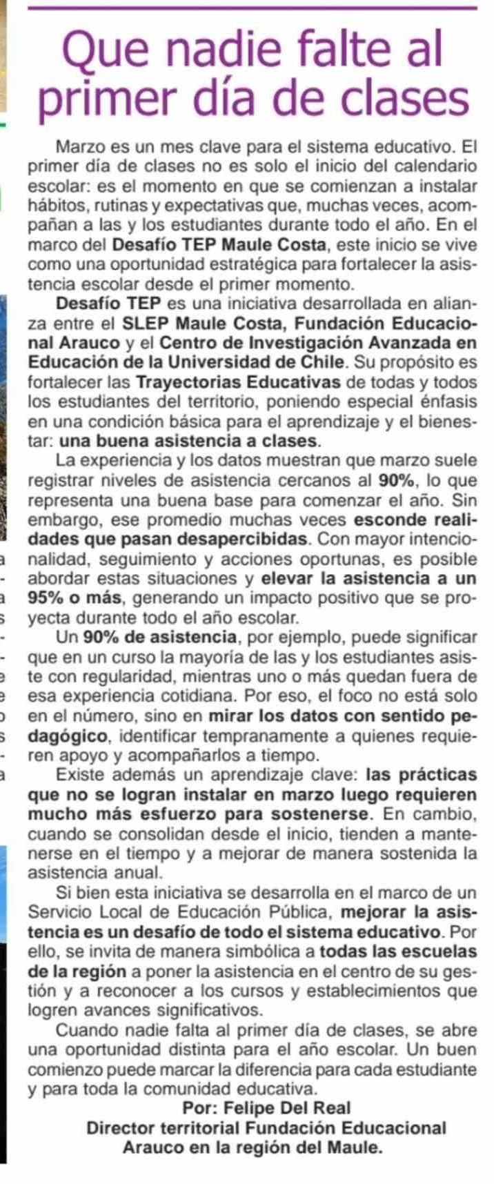 Que nadie falte al primer día de clases
