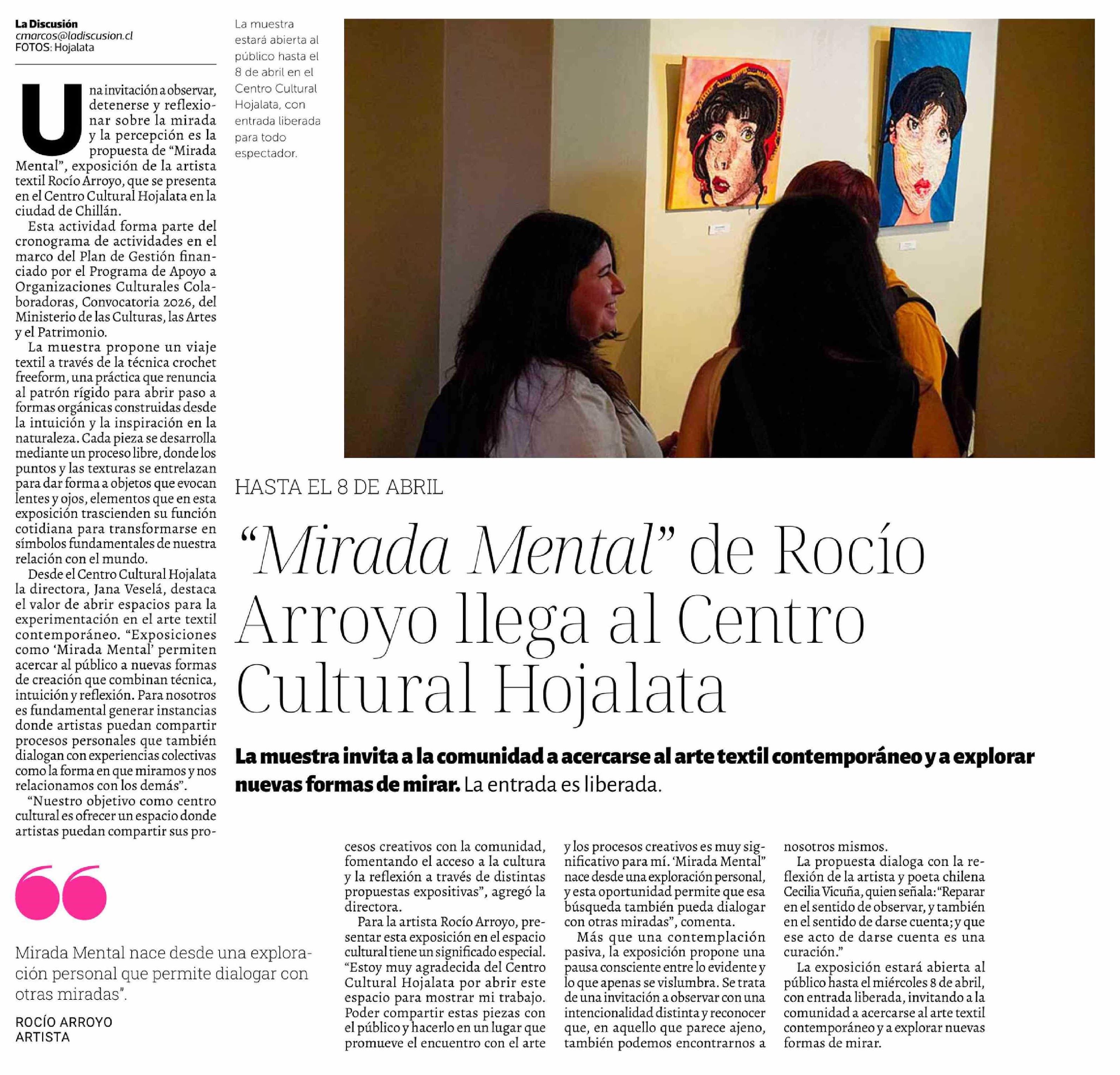 "Mirada Mental" de Rocío Arroyo llega al Centro Cultural Hojalata 24-03-2026 La Discusión |