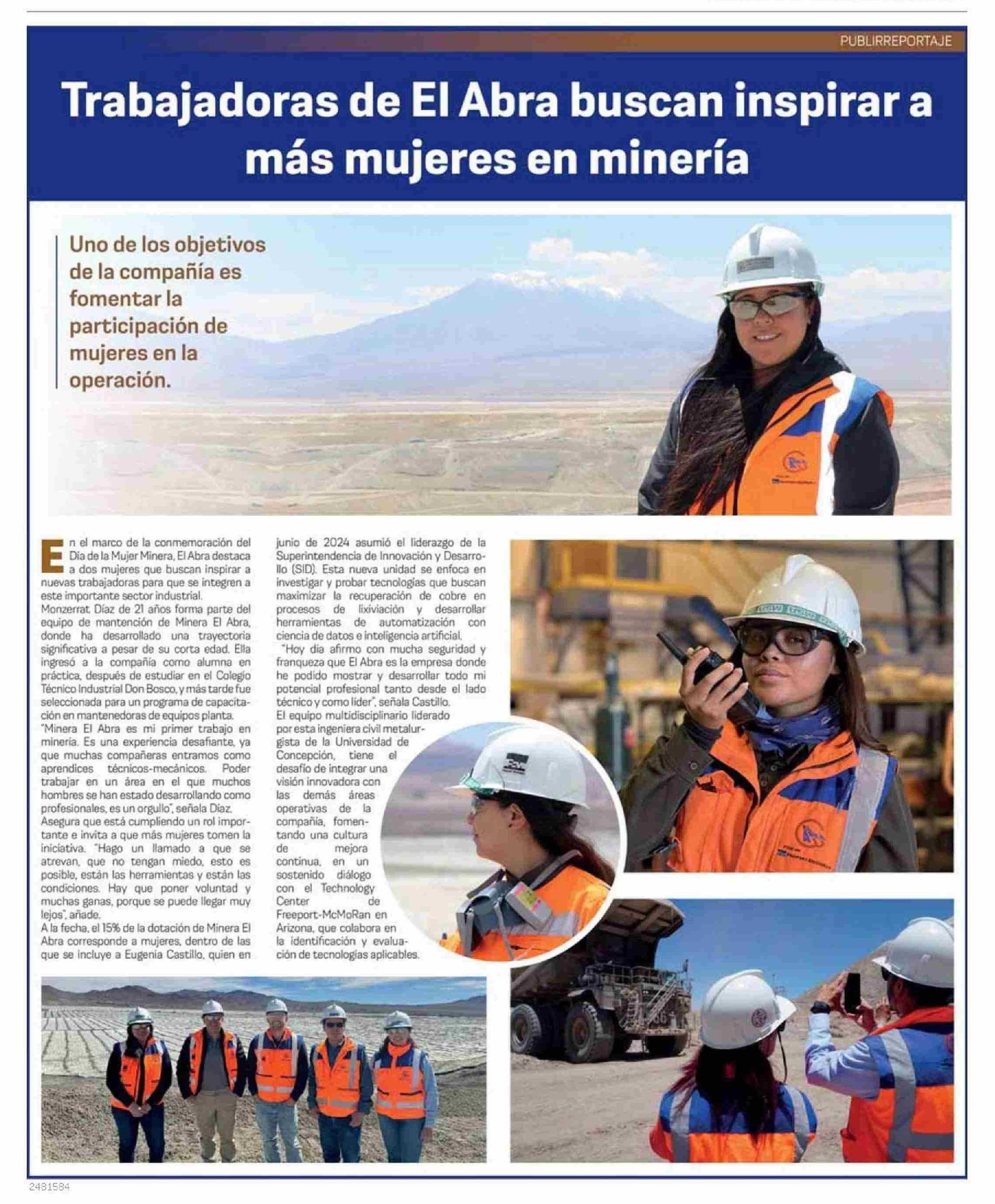 Trabajadoras de El Abra buscan inspirar a más mujeres en minería 13-06-2025 El Mercurio de Calama |