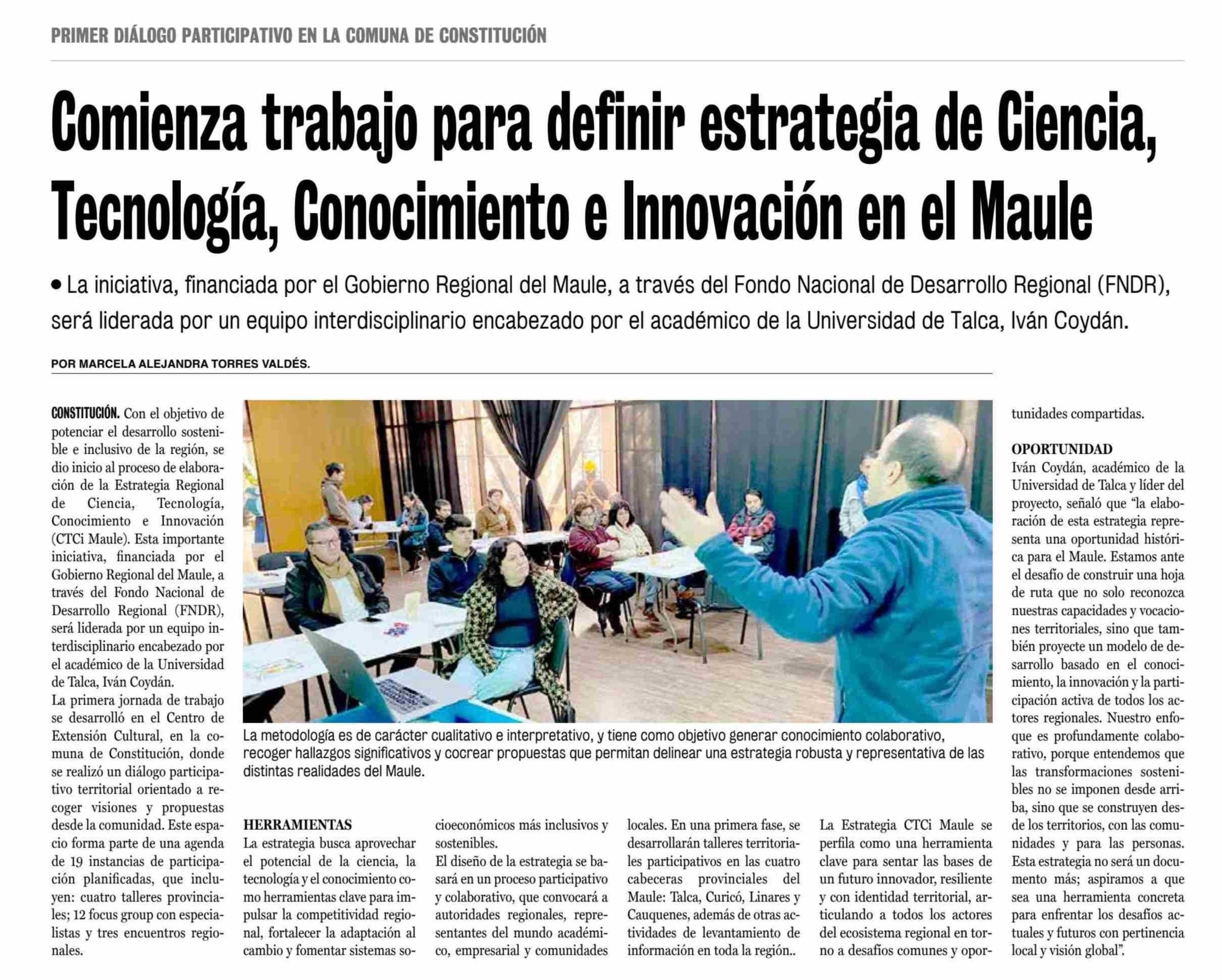 Comienza trabajo para definir estrategia de Ciencia, Tecnología, Conocimiento e Innovación en el Maule 20-05-2025 La Prensa de Curicó |