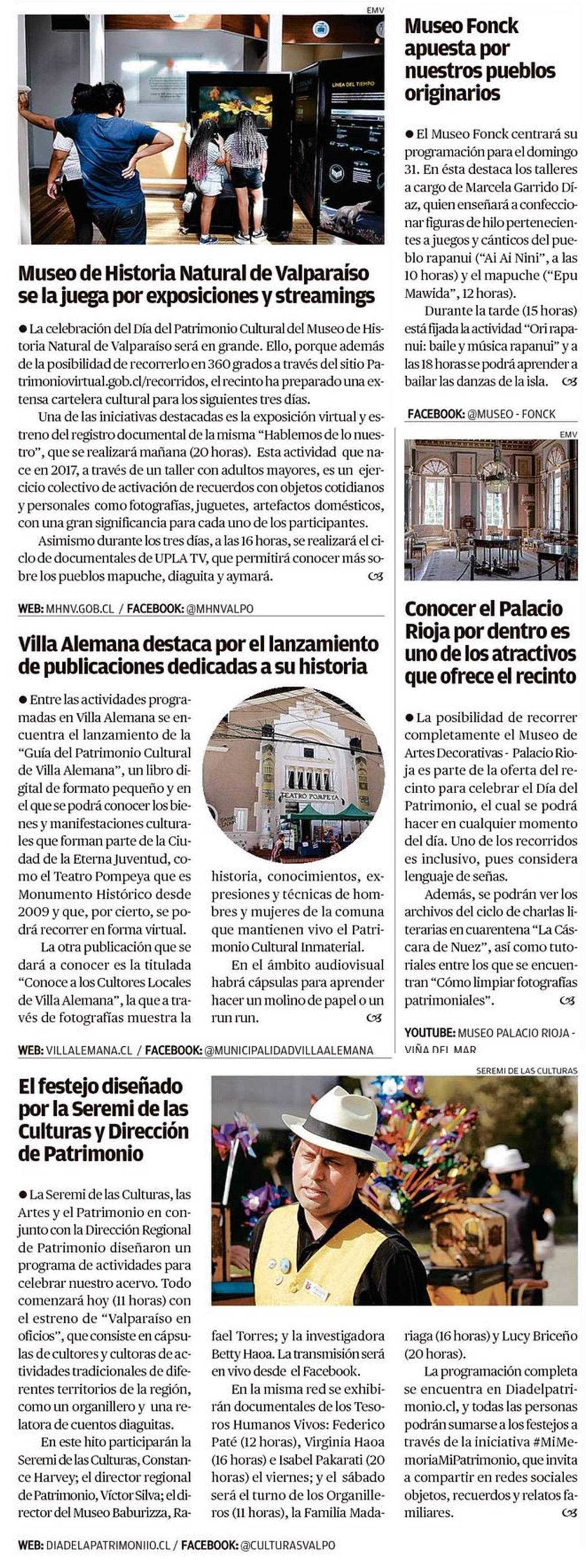 Guía de actividades para disfrutar del Día del Patrimonio Cultural en Casa 29-05-2020 El Mercurio de Valparaíso |