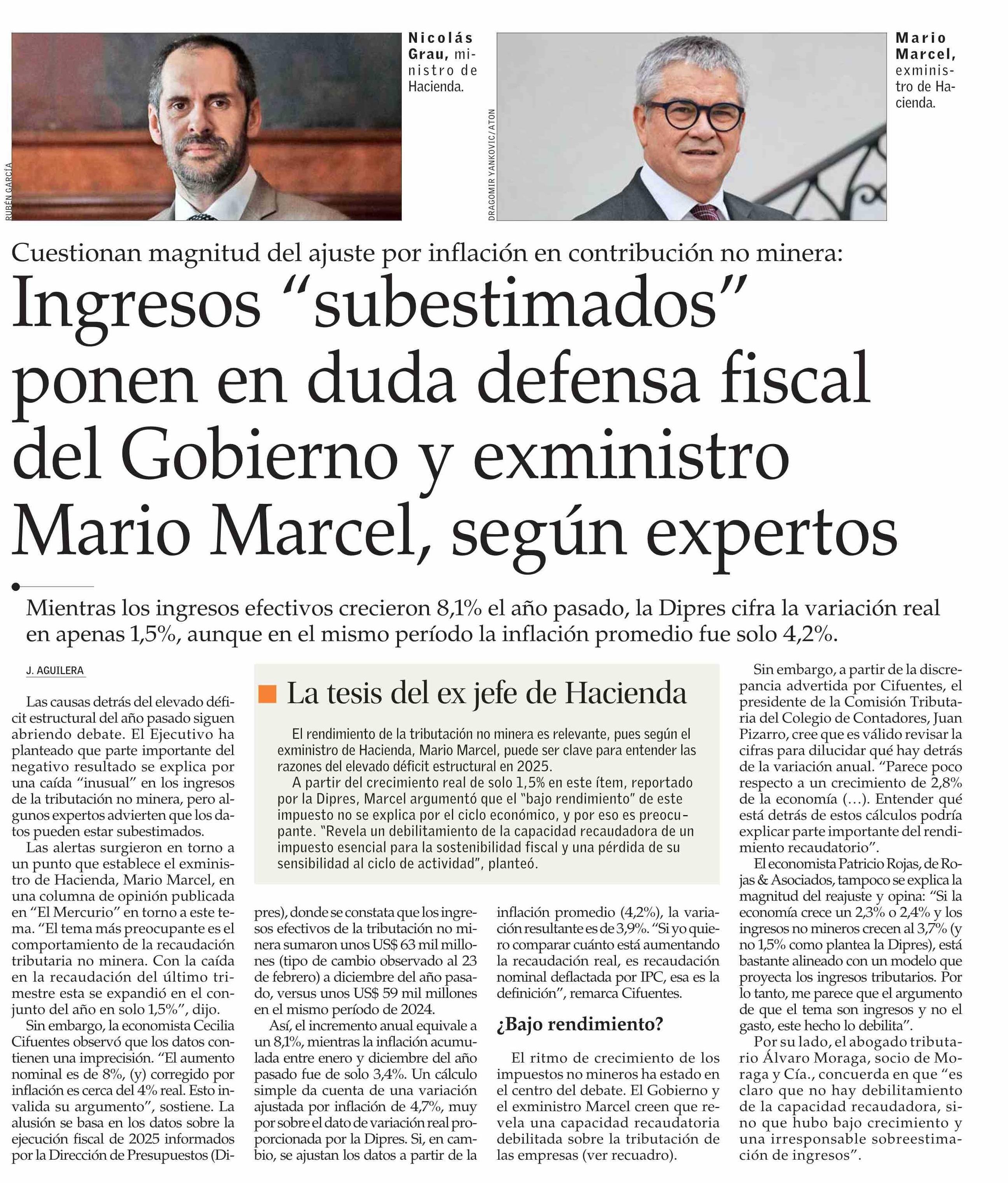 Título: Ingresos “subestimados” ponen en duda defensa fiscal del Gobierno y exministro Mario Marcel, según expertos