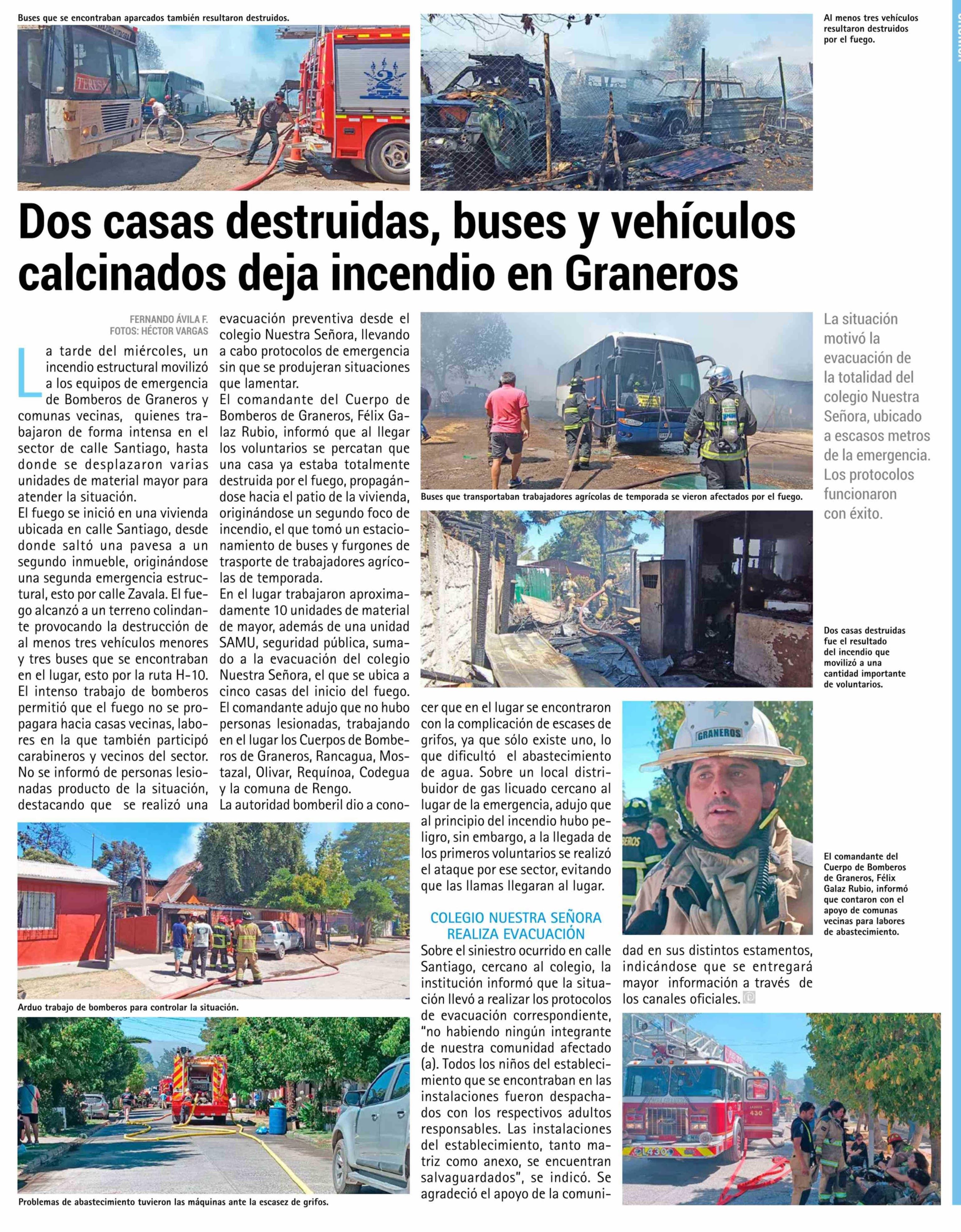 Dos casas destruidas, buses y vehículos calcinados deja incendio en Graneros 05-03-2026 El Rancagüino |