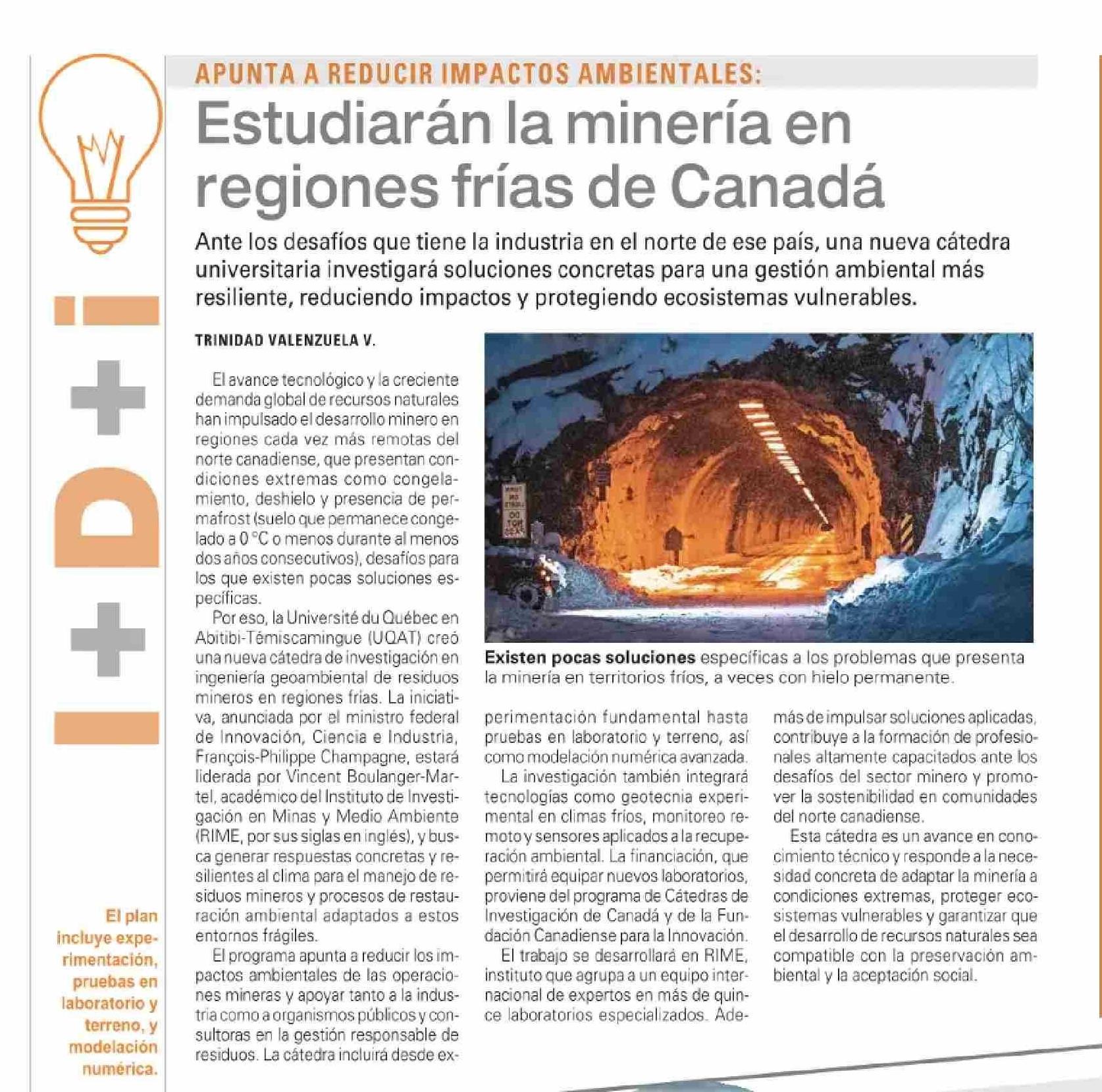Título: Estudiarán la minería en regiones frías de Canadá