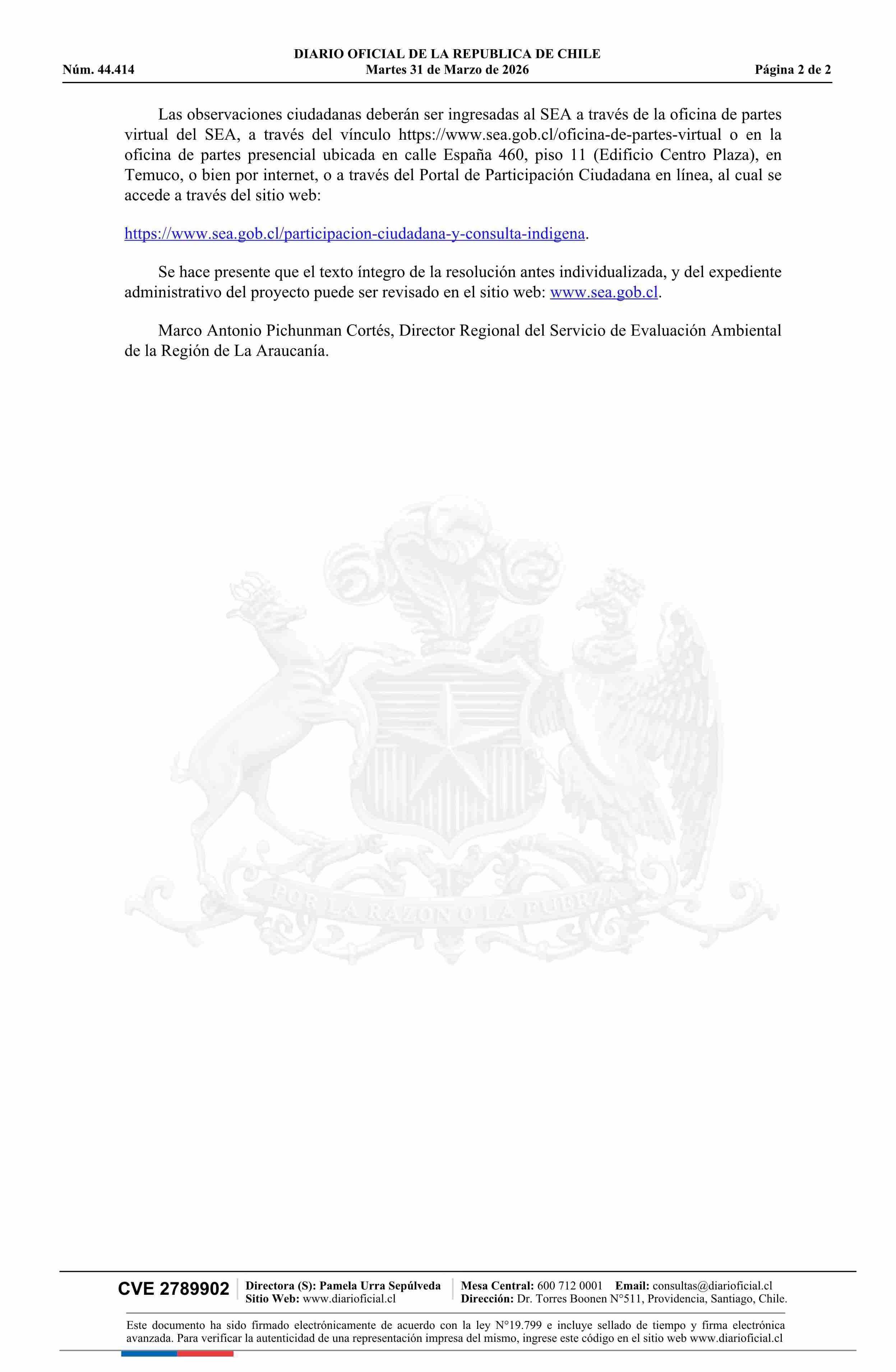 Título: MINISTERIO DEL MEDIO AMBIENTE Servicio de Evaluación Ambiental / Región de la Araucanía NOTIFICA RESOLUCIÓN DE INICIO DE NUEVO PROCESO DE PARTICIPACIÓN CIUDADANA DECLARACIÓN DE IMPACTO AMBIENTAL “PROYECTO PARQUE RESIDENCIAL LOS CIPRESES 2”