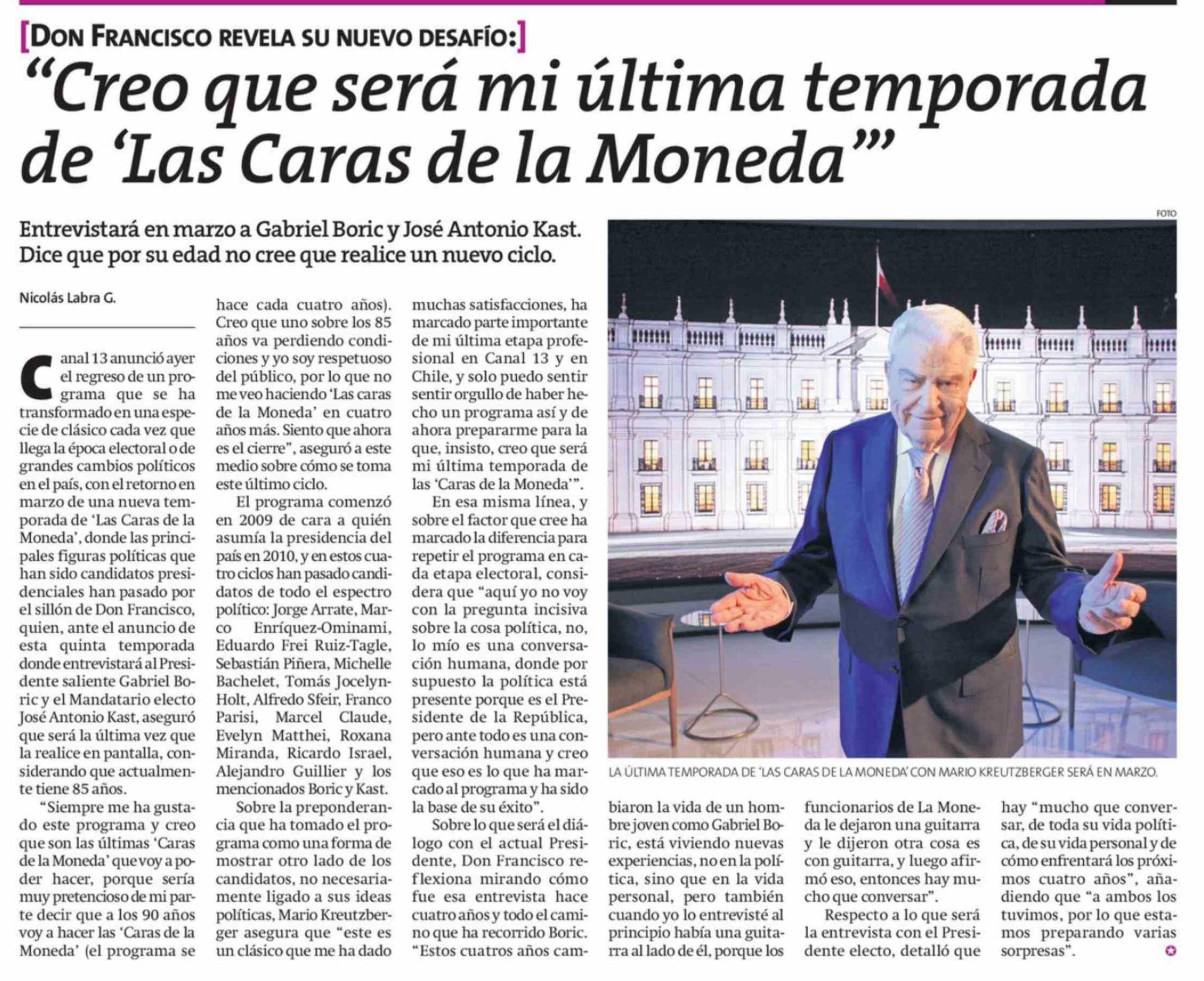 Título: "Creo que será mi última temporada de 'Las Caras de la Moneda"