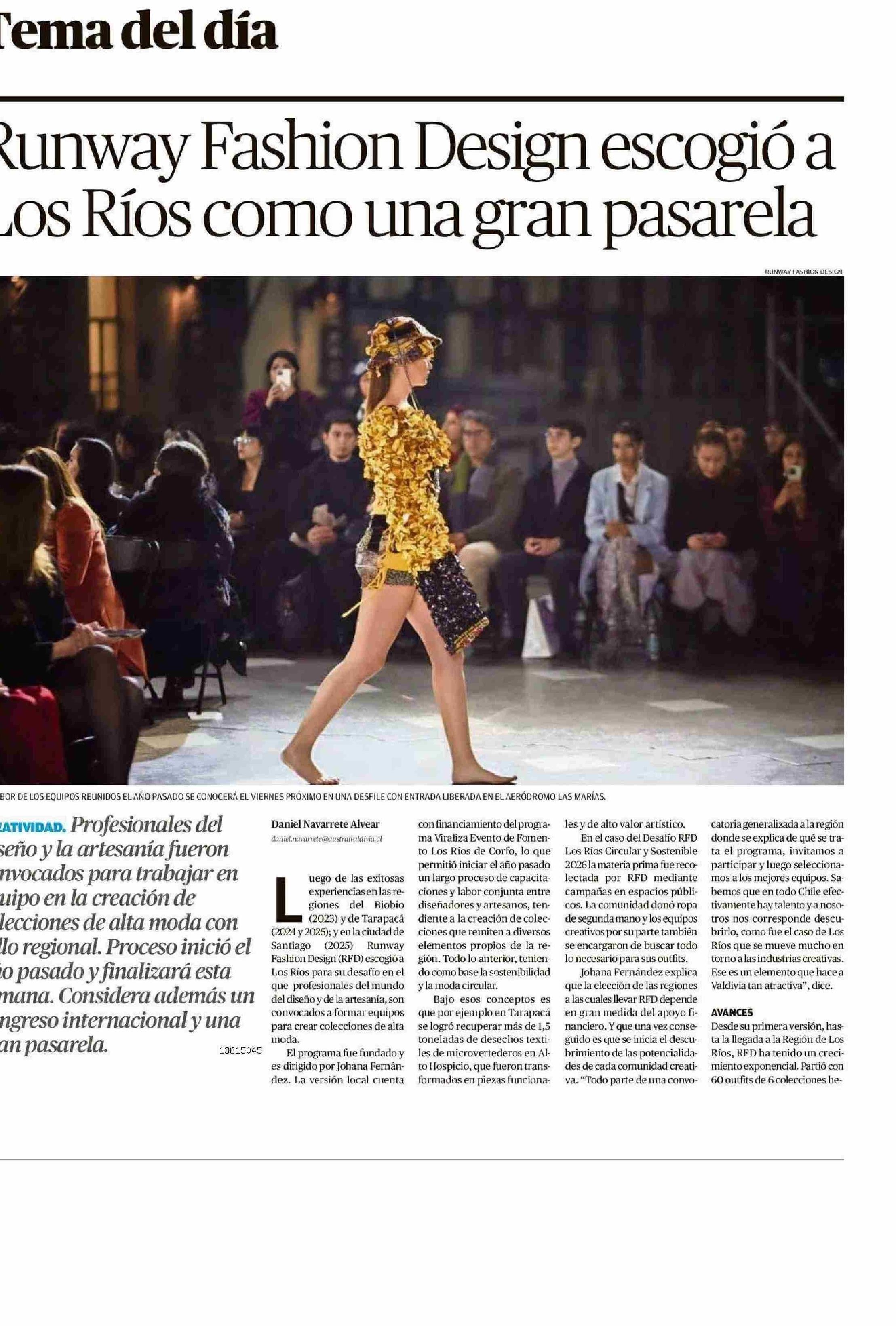 Runway Fashion Design escogió a Los Ríos como una gran pasarela 27-01-2026 Diario Austral Región de Los Ríos |