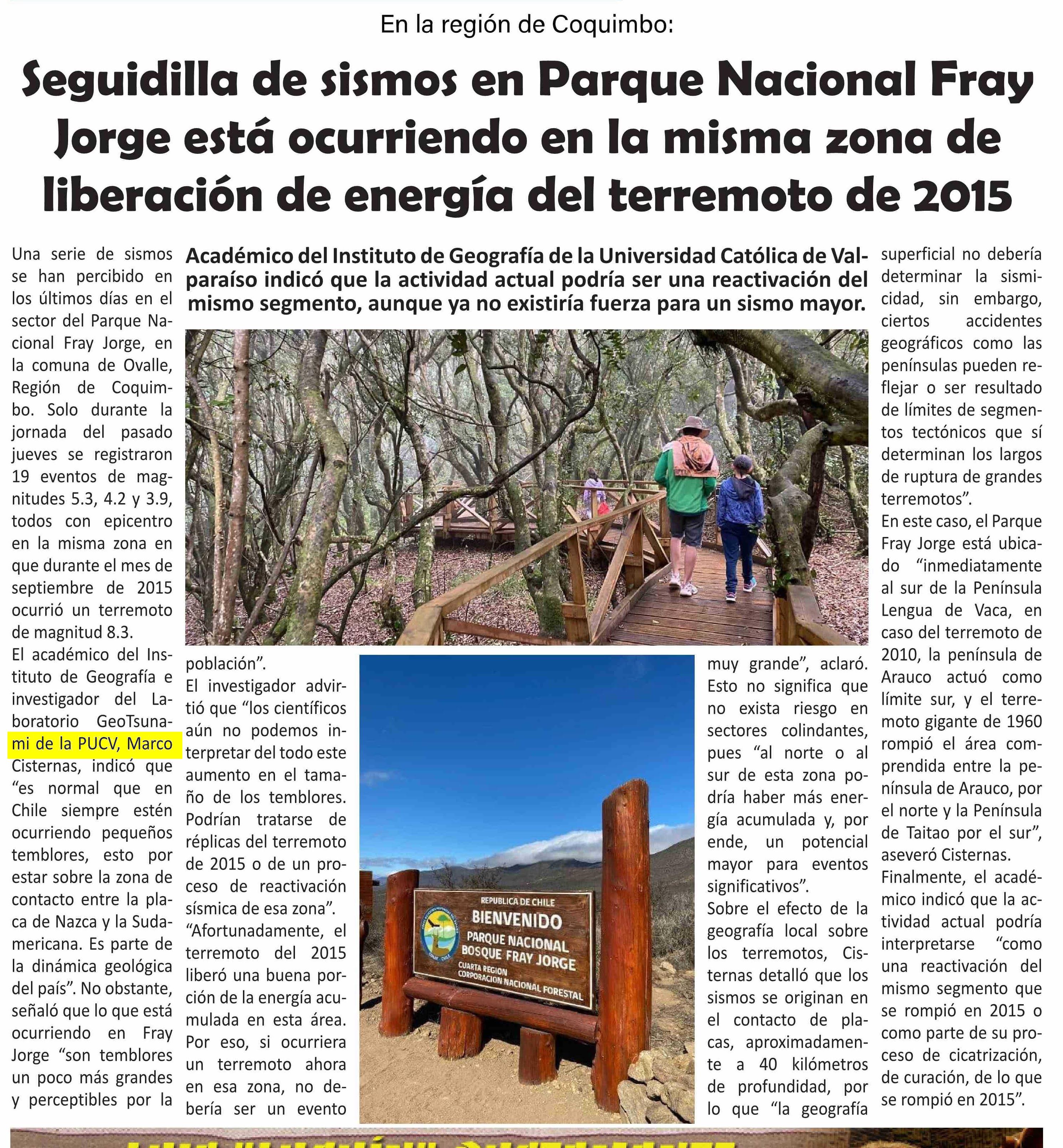 | Título: | Seguidilla de sismos en Parque Nacional Fray Jorge está ocurriendo en la misma zona de liberación de energía del terremoto de 2015 |