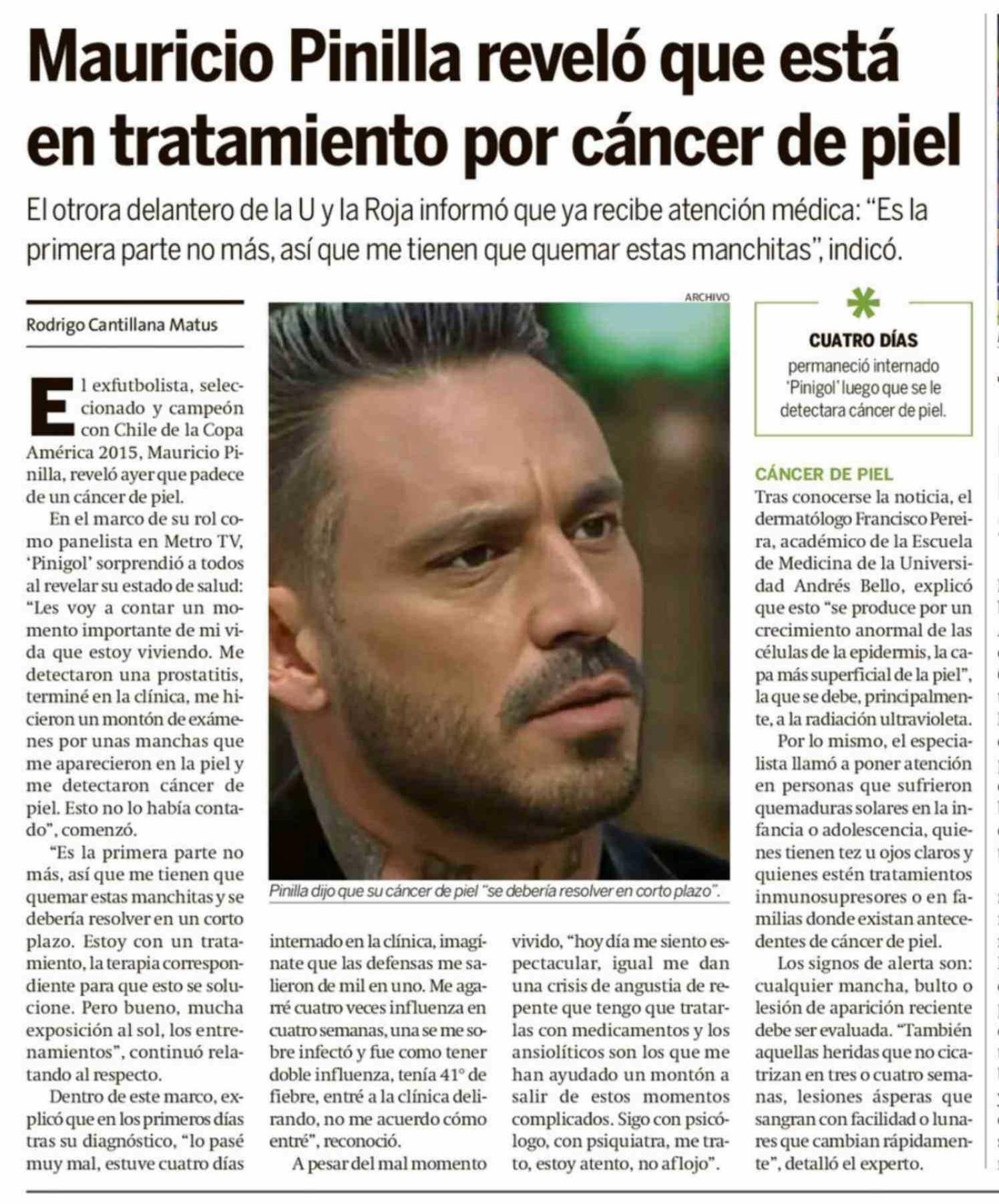 Título: Mauricio Pinilla reveló que está en tratamiento por cáncer de piel
