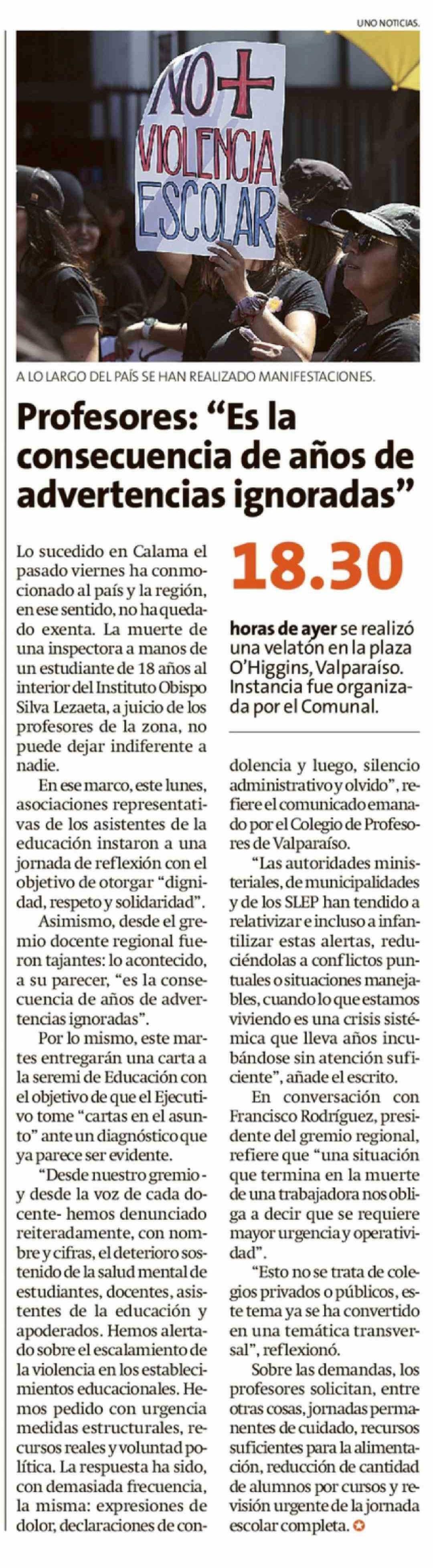 Profesores: "Es la consecuencia de años de advertencias ignoradas" 31-03-2026 La Estrella de Valparaíso |