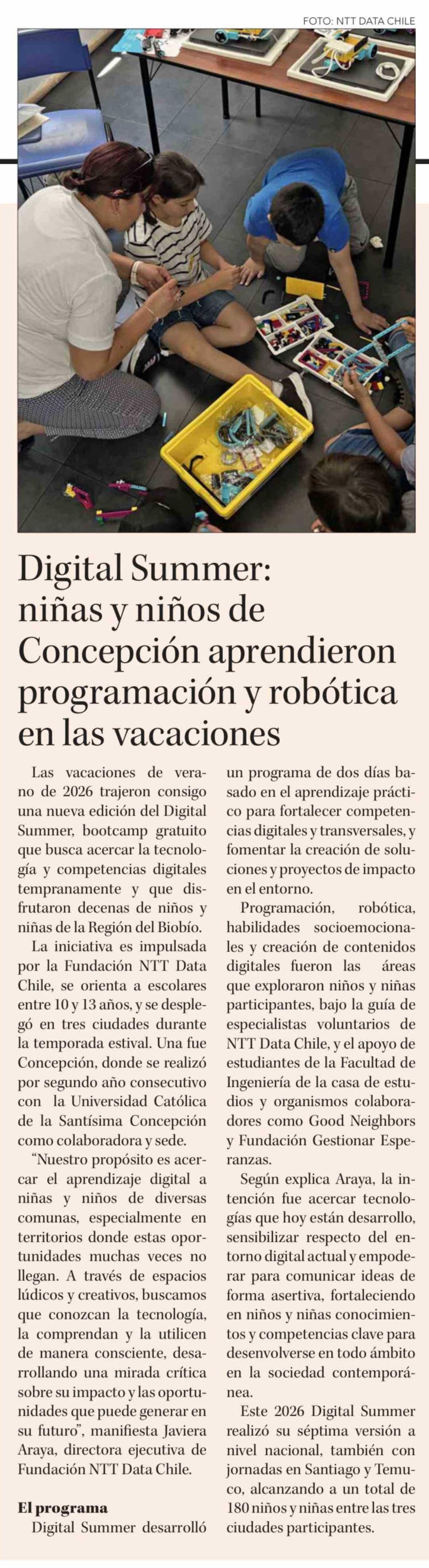 Digital Summer: niñas y niños de Concepción aprendieron programación y robótica en las vacaciones 06-03-2026 Diario Concepción |