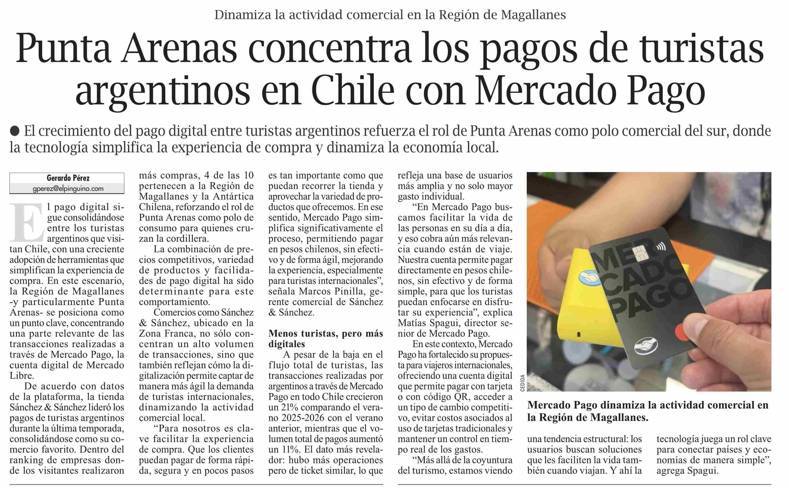 | Título: | Punta Arenas concentra los pagos de turistas argentinos en Chile con Mercado Pago |