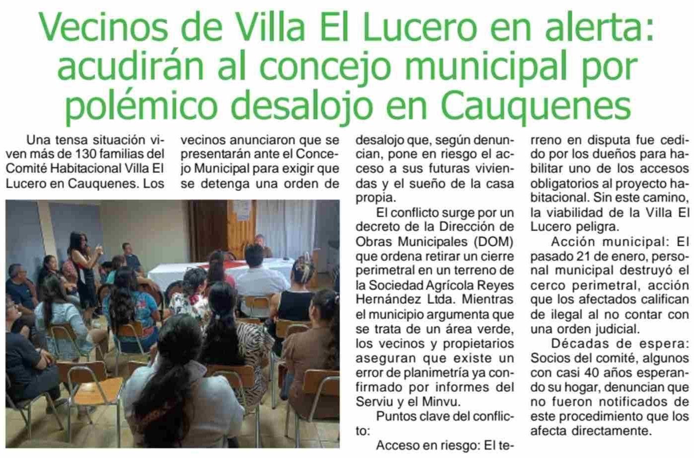 | Título: | Vecinos de Villa El Lucero en alerta: acudirán al concejo municipal por polémico desalojo en Cauquenes |