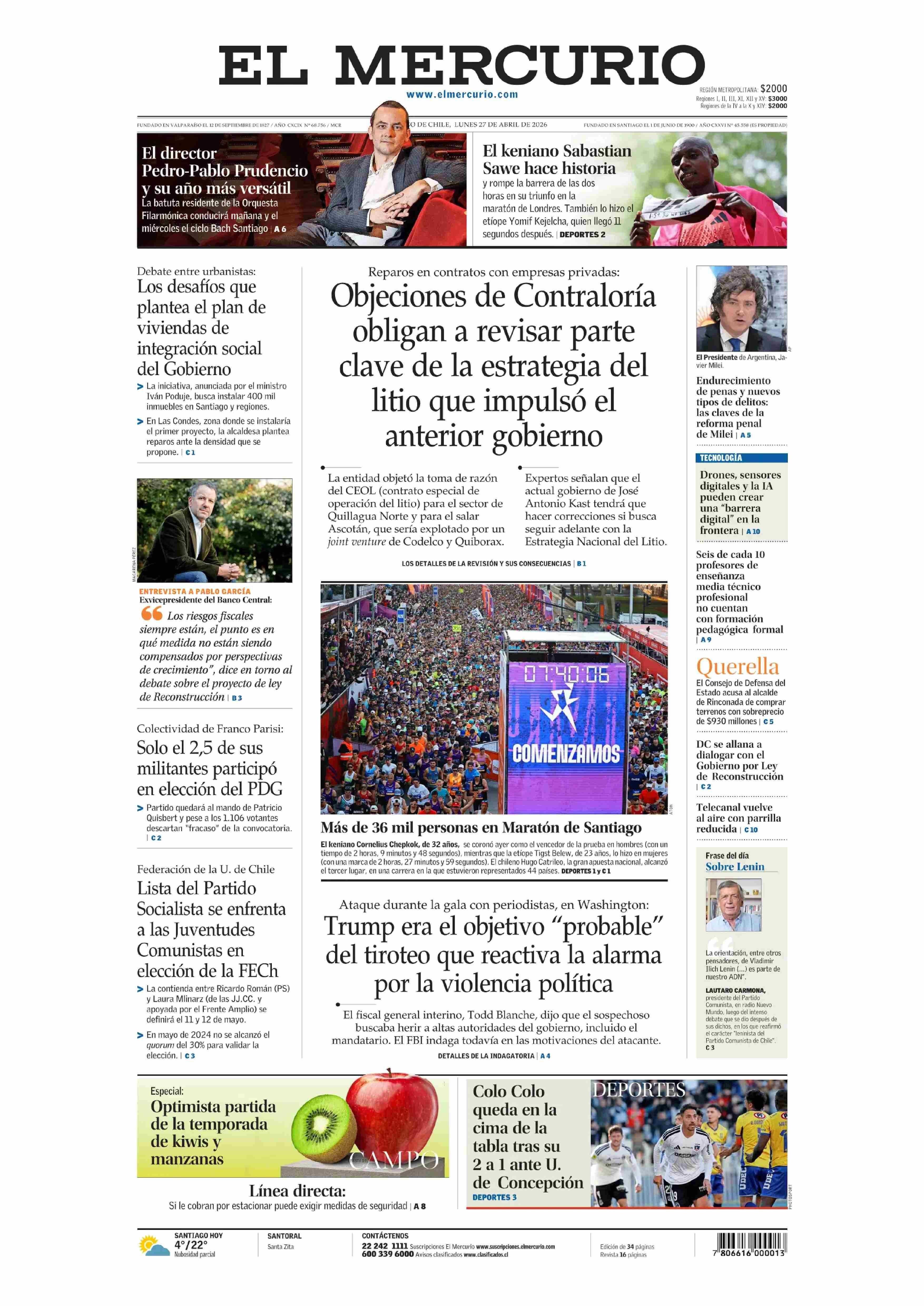 PORTADA EL MERCURIO (A) CHILE 27-04-2026 El Mercurio |