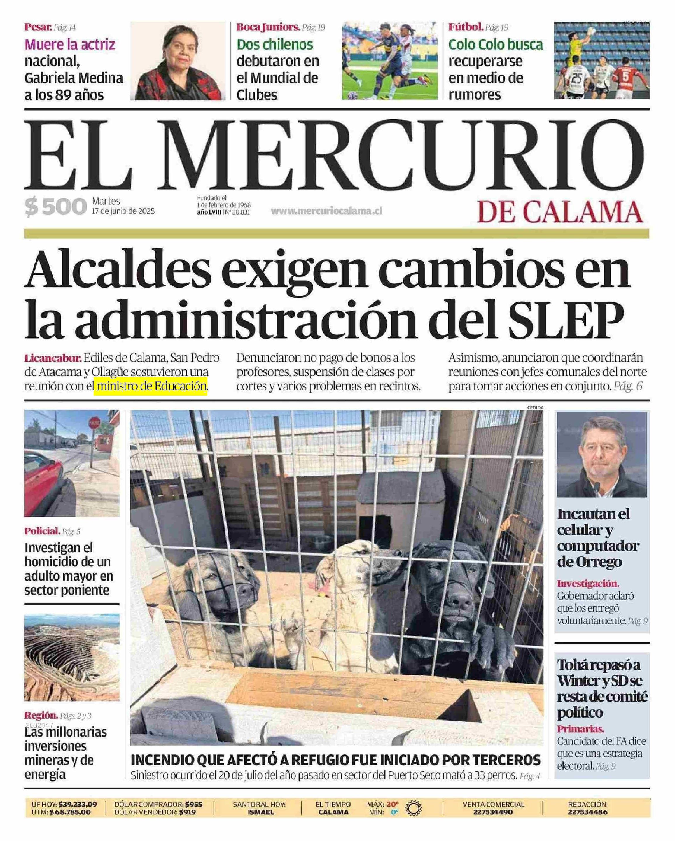 PORTADA EL MERCURIO DE CALAMA - CHILE 17-06-2025 El Mercurio de Calama |