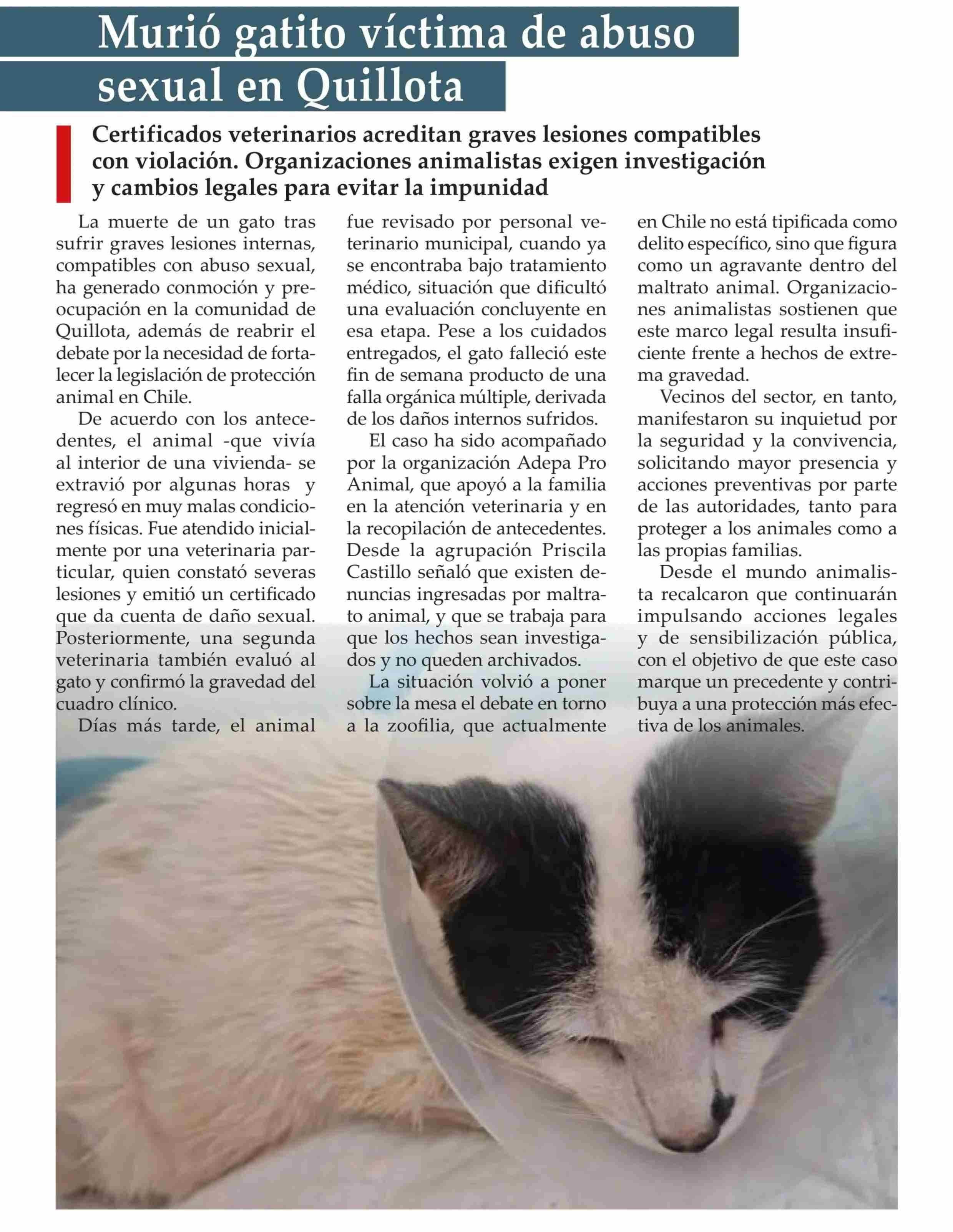 | Título: | _ Murió gatito víctima de abuso sexual en Quillota |