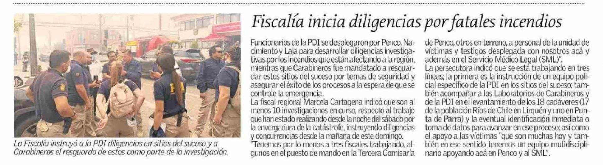 Fiscalía inicia diligencias por fatales incendios 19-01-2026 El Sur |