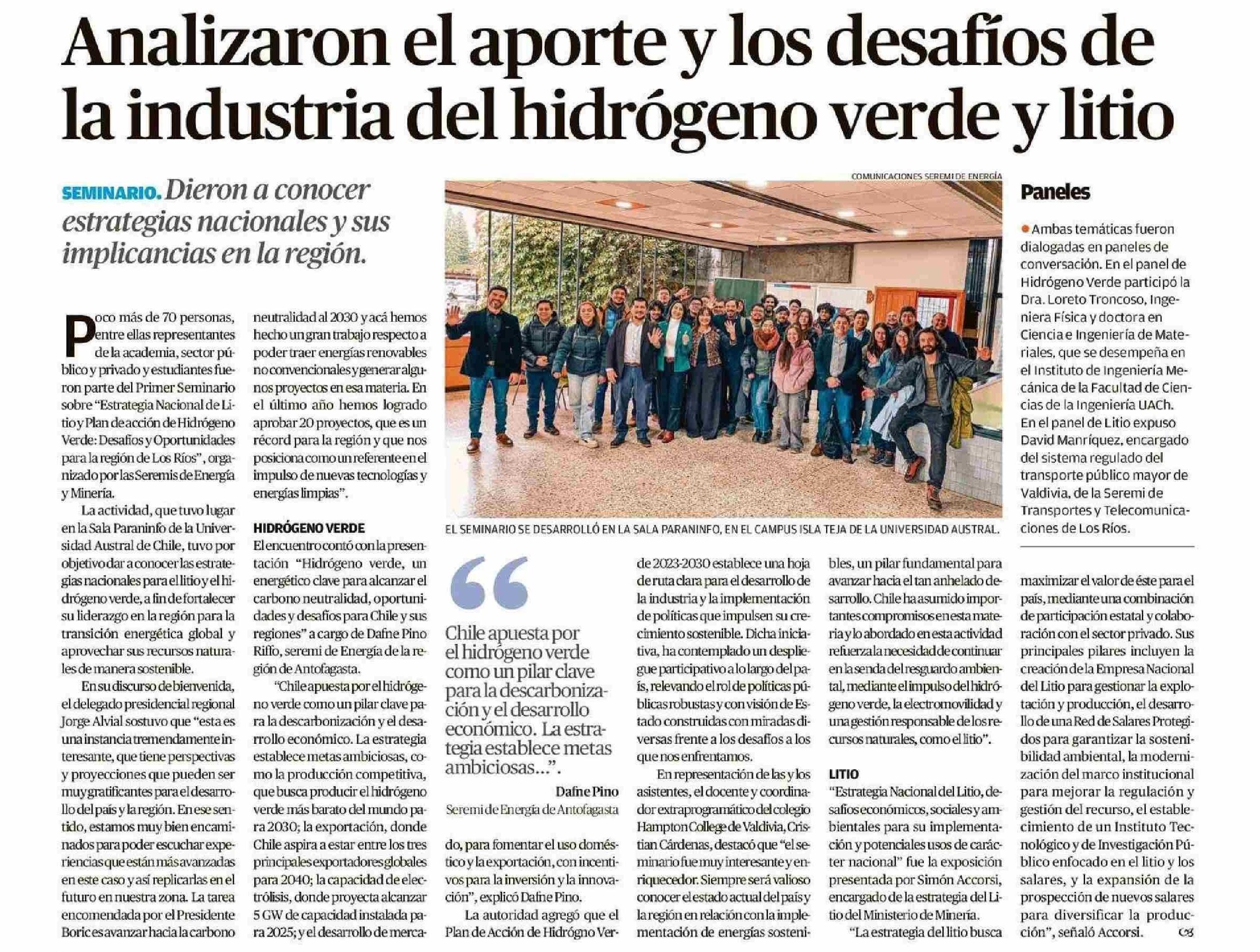 Analizaron el aporte y los desafíos de la industria del hidrógeno verde y litio 17-06-2025 Diario Austral Región de Los Ríos |