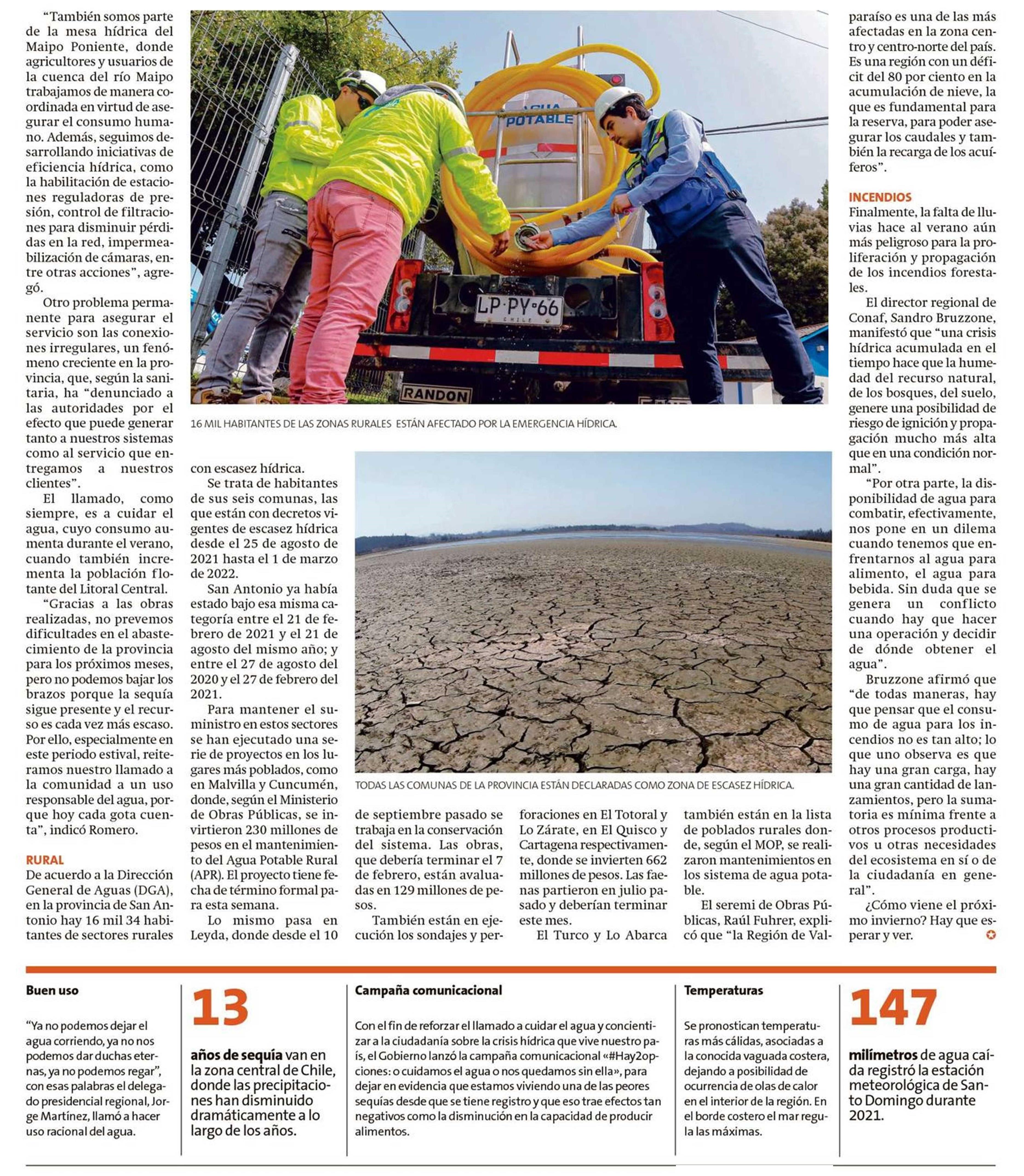 El desafio de la provincia para mantener el agua potable en plena “megasequía” 17-01-2022 El Líder |
