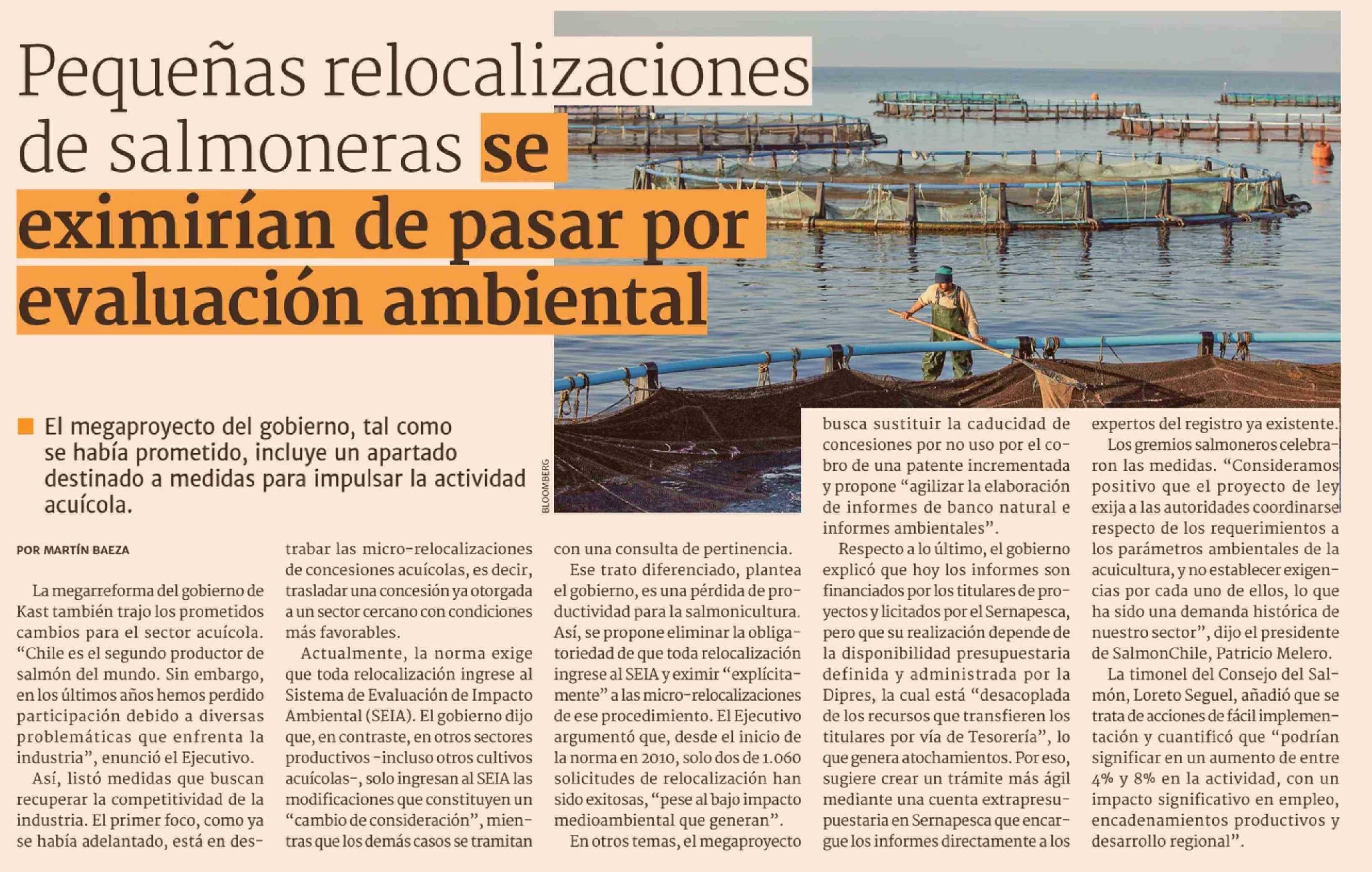 Título: Pequeñas relocalizaciones de salmoneras se eximirían de pasar por evaluación ambiental