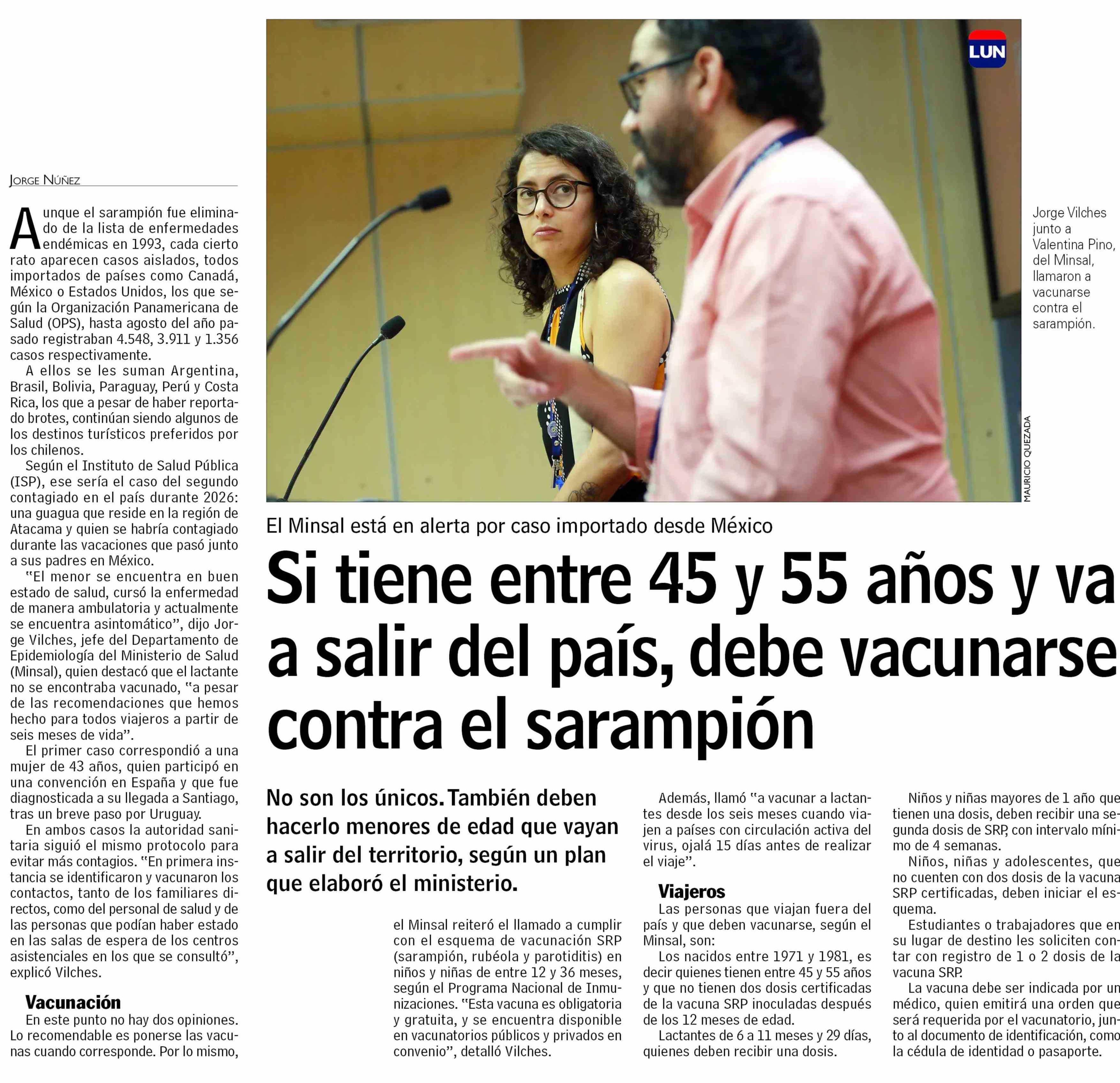 | Título: | Si tiene entre 45 y 55 años y va a salir del pais, debe vacunarse contra el sarampión |