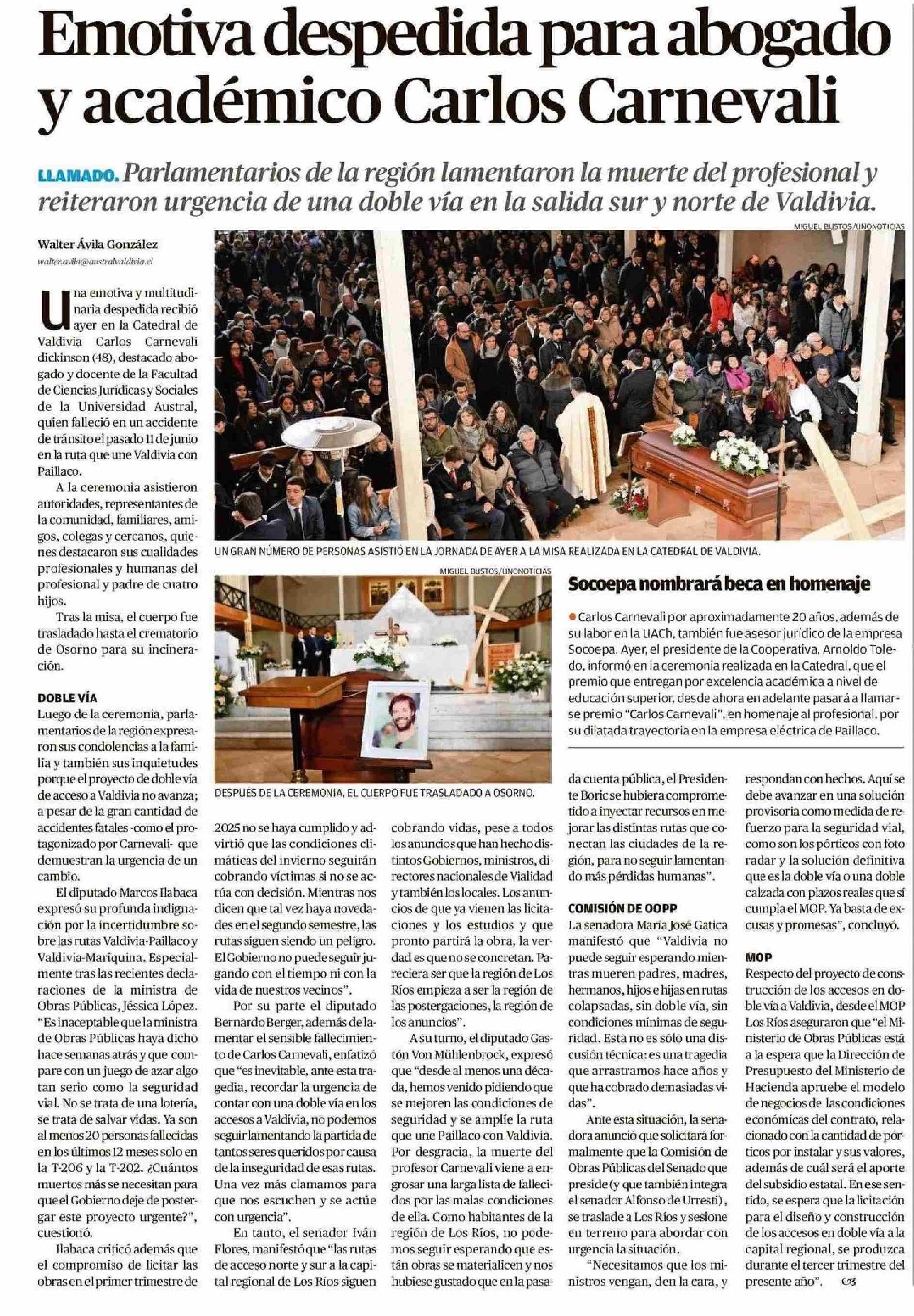 Emotiva despedida para abogado y académico Carlos Carnevali 14-06-2025 Diario Austral Región de Los Ríos |