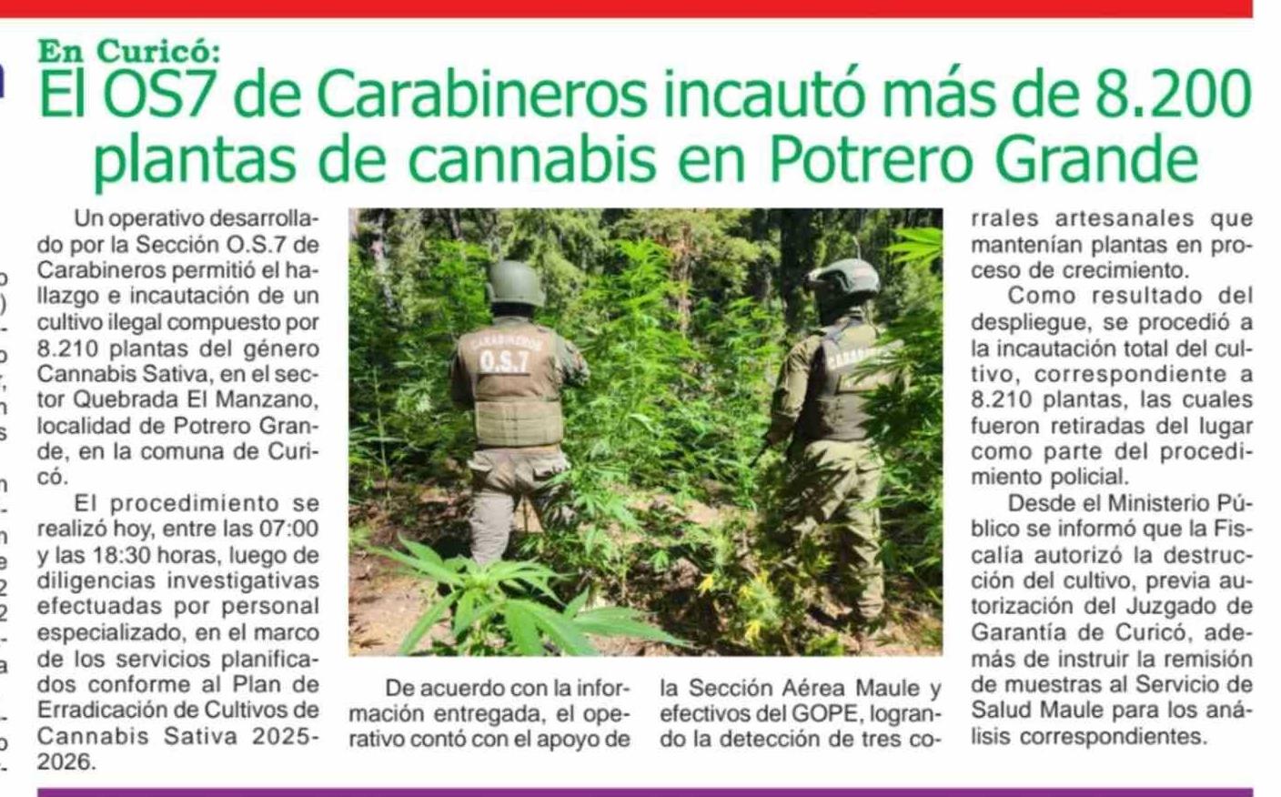 Título: El OS7 de Carabineros incautó más de 8.200 plantas de cannabis en Potrero Grande