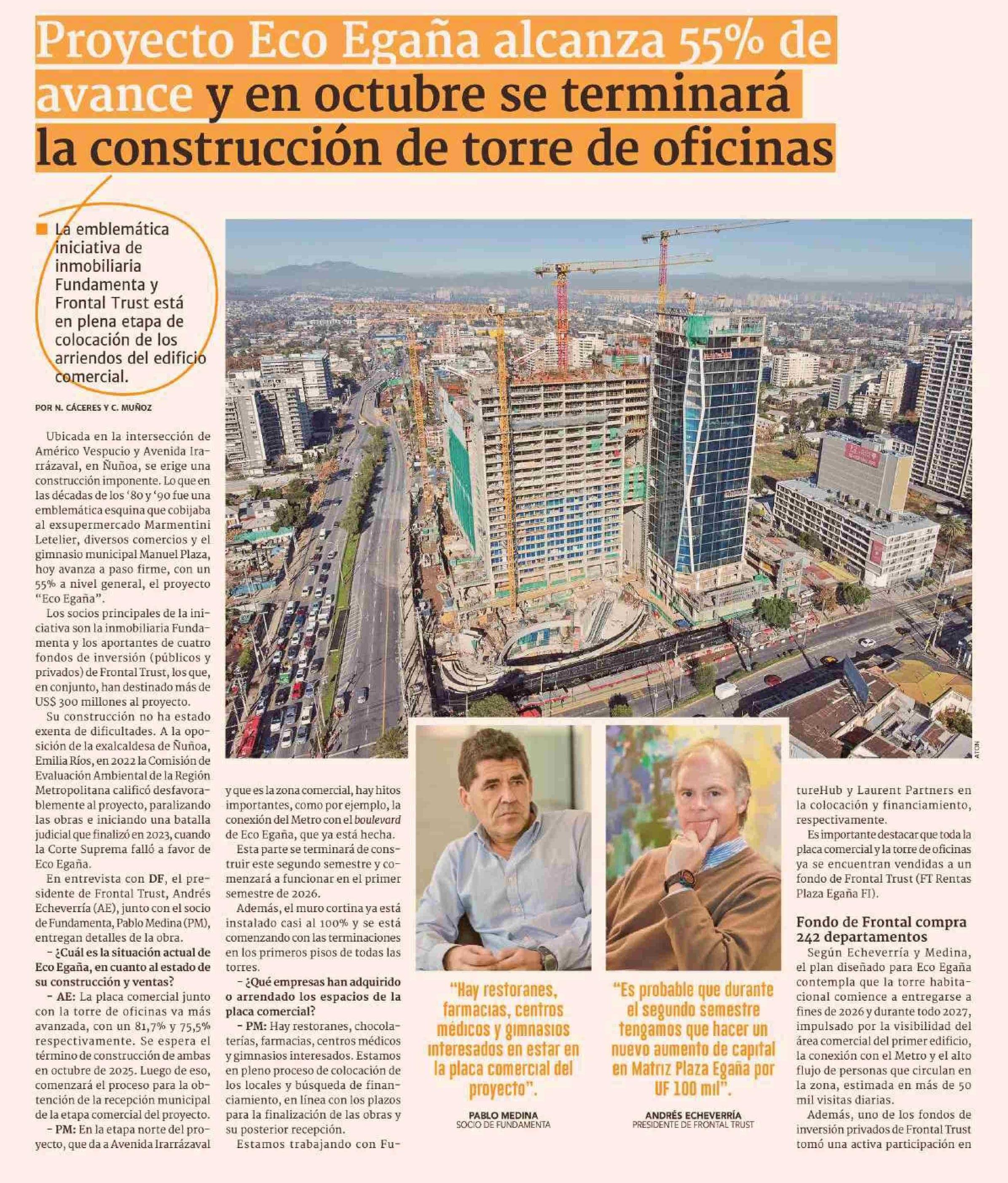 Título: Proyecto Eco Egaña alcanza 55% de avance y en octubre se terminará la construcción de torre de oficinas