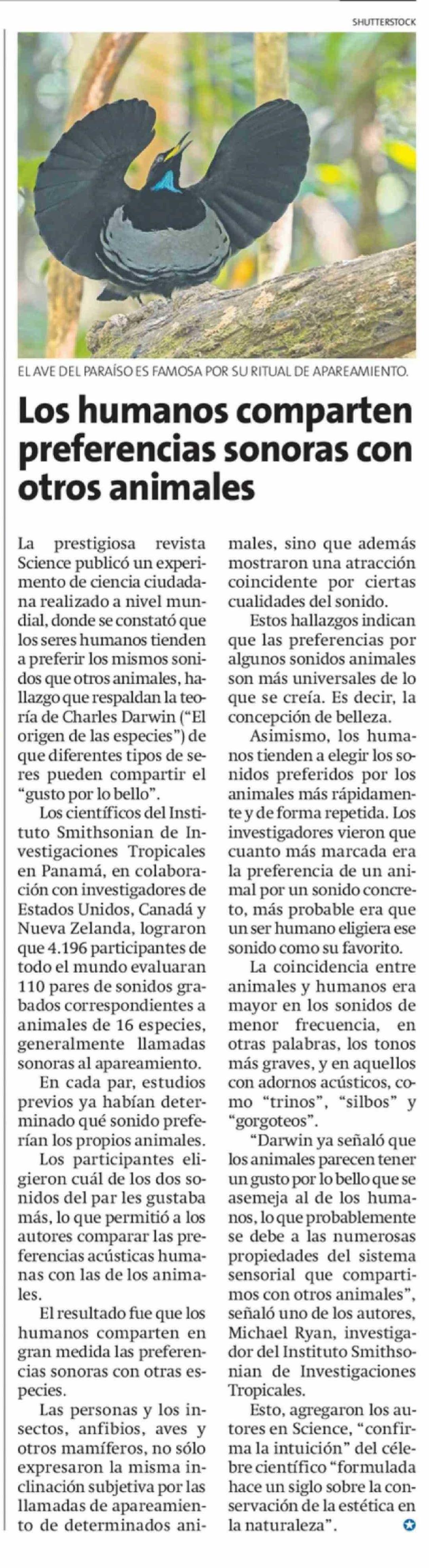 Los humanos comparten preferencias sonoras con otros animales 22-03-2026 La Estrella de Iquique |