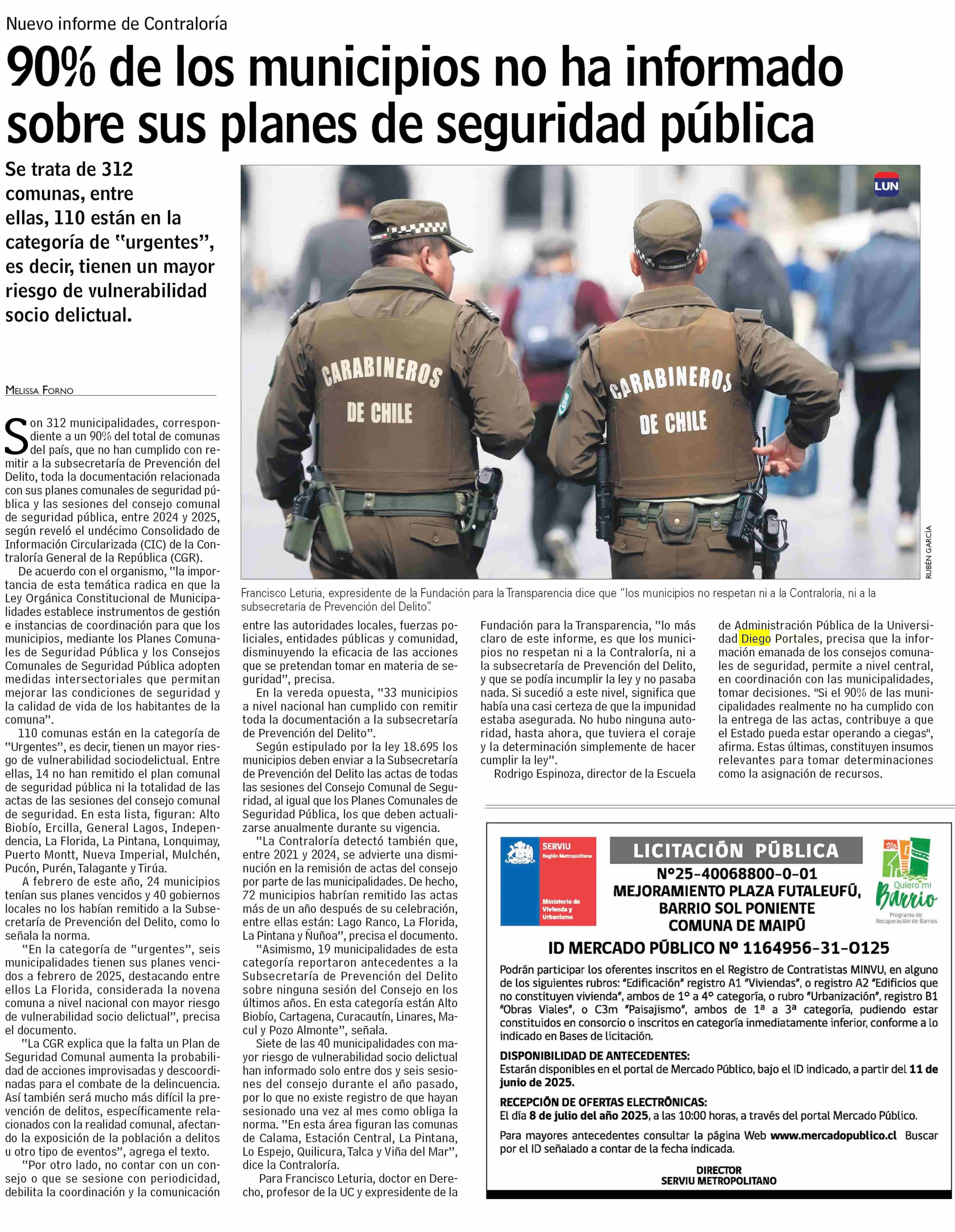 90% de los municipios no ha informado sobre sus planes de seguridad pública 10-06-2025 Las Últimas Noticias |