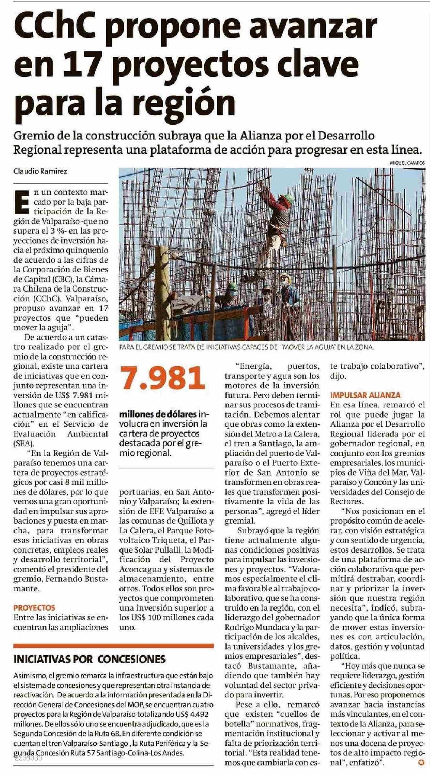 | Título: | CChC propone avanzar en 17 proyectos clave para la región |