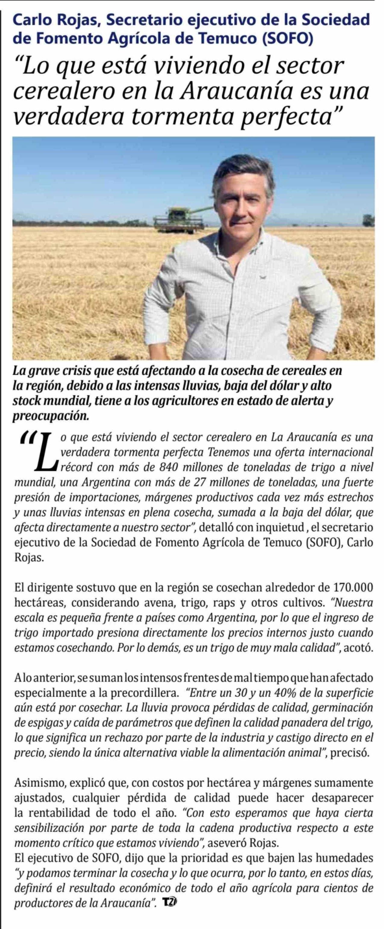 Título: 'Lo que está viviendo el sector cerealero en la Araucanía es una verdadera tormenta perfecta"
