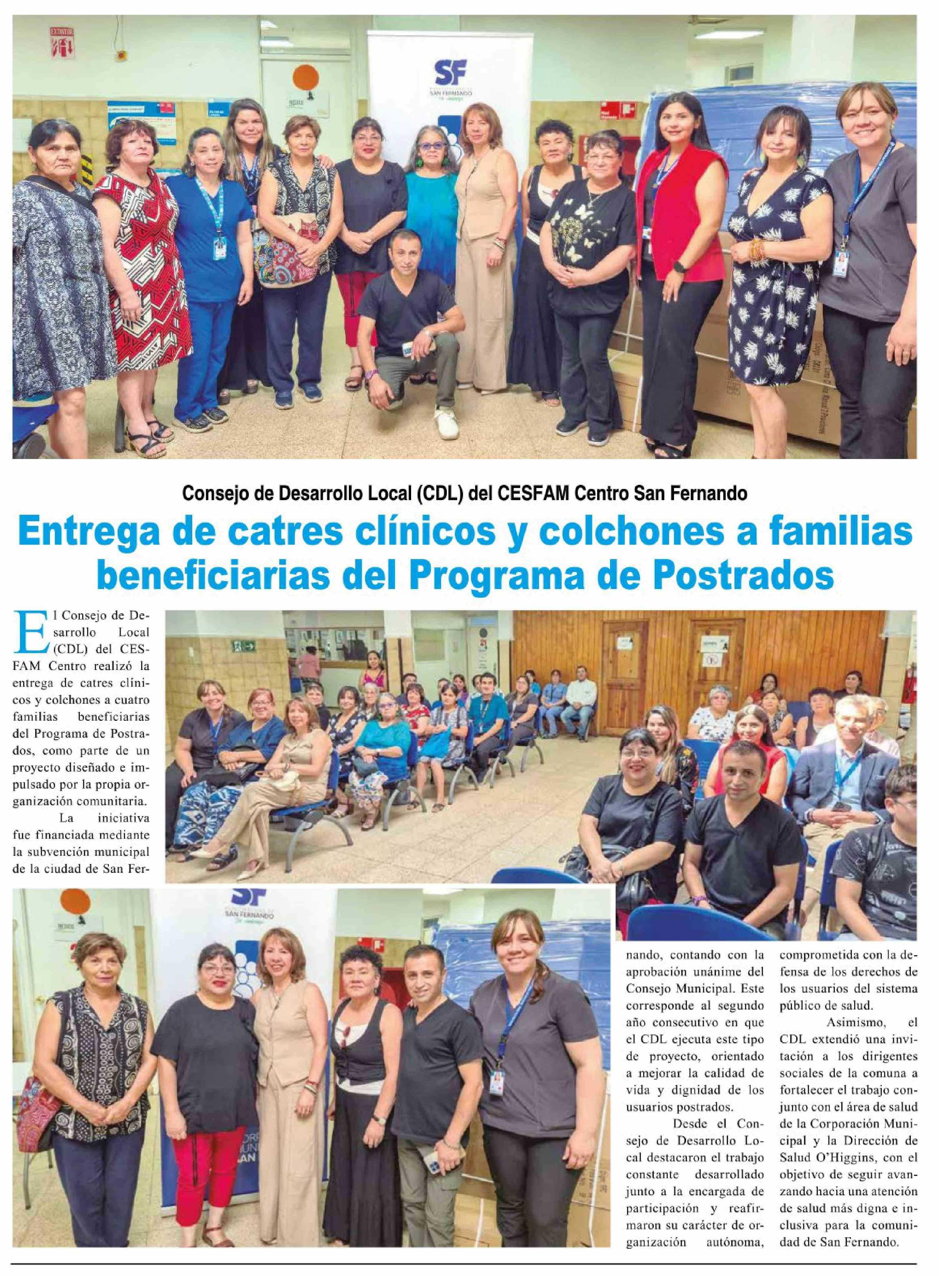 Entrega de catres clínicos y colchones a familias beneficiarias del Programa de Postrados 23-01-2026 Diario VI Región |